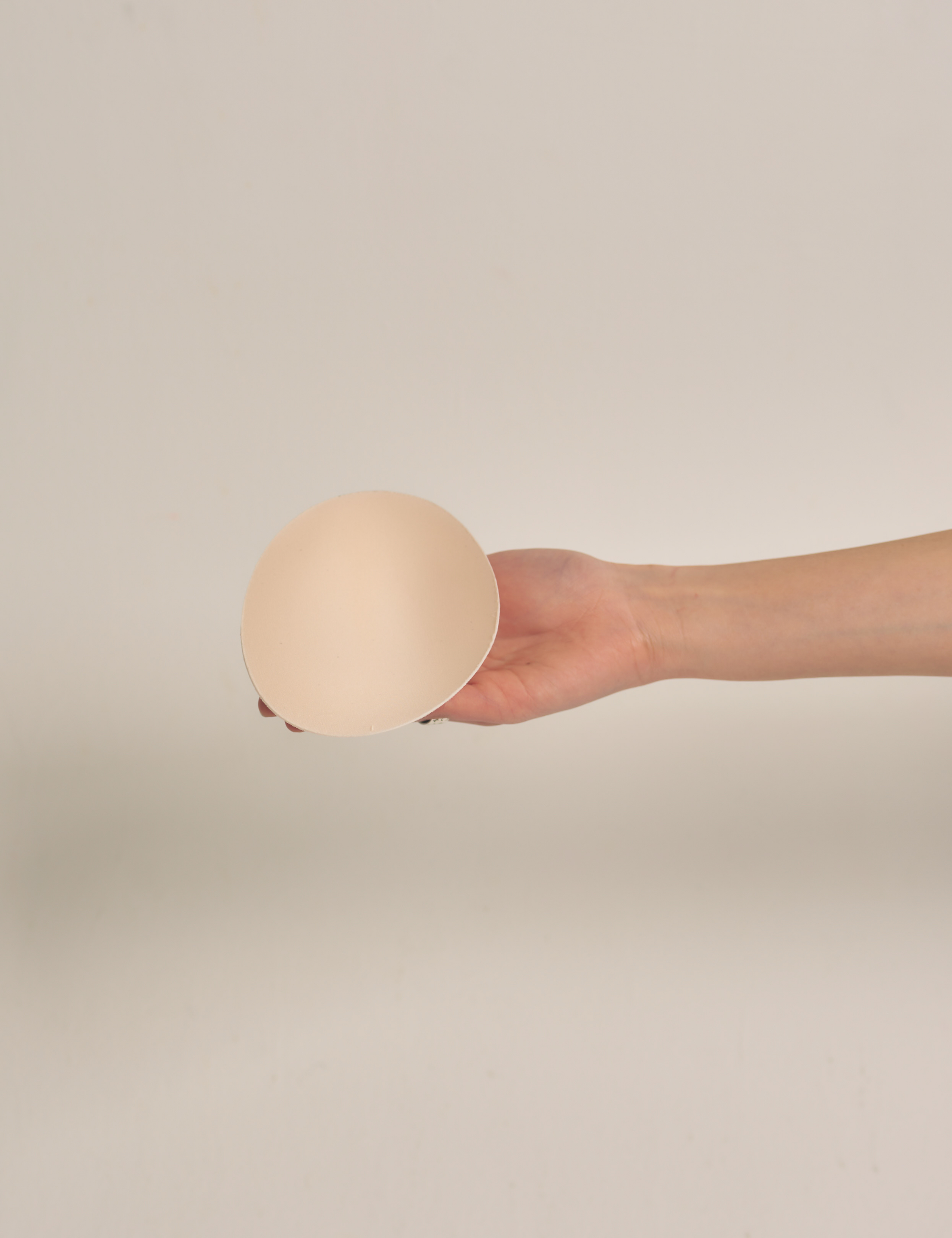 優しく包み込むようなふんわり質感が特徴の、オーバル型ソフトパッド。適度な厚みでバスト全体を整え、自然な丸みとフォルムをキープします。