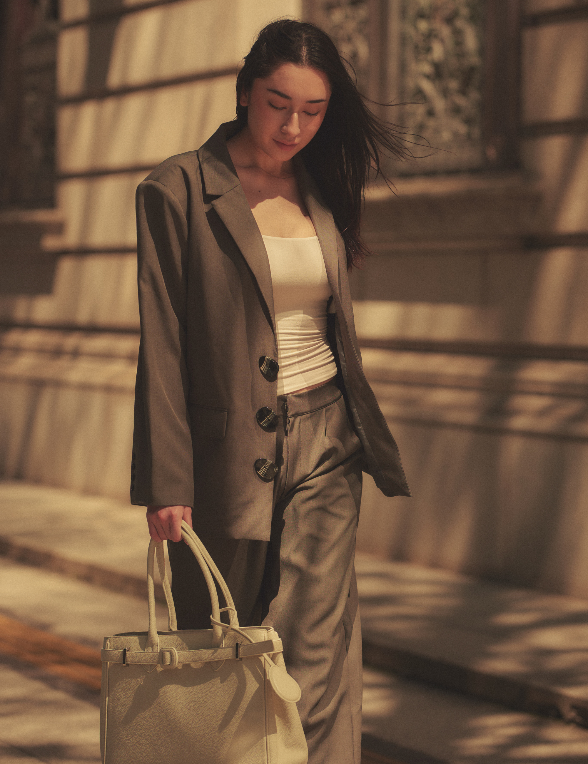 Elegant Draped Padded Top / 亜麻色(greige)