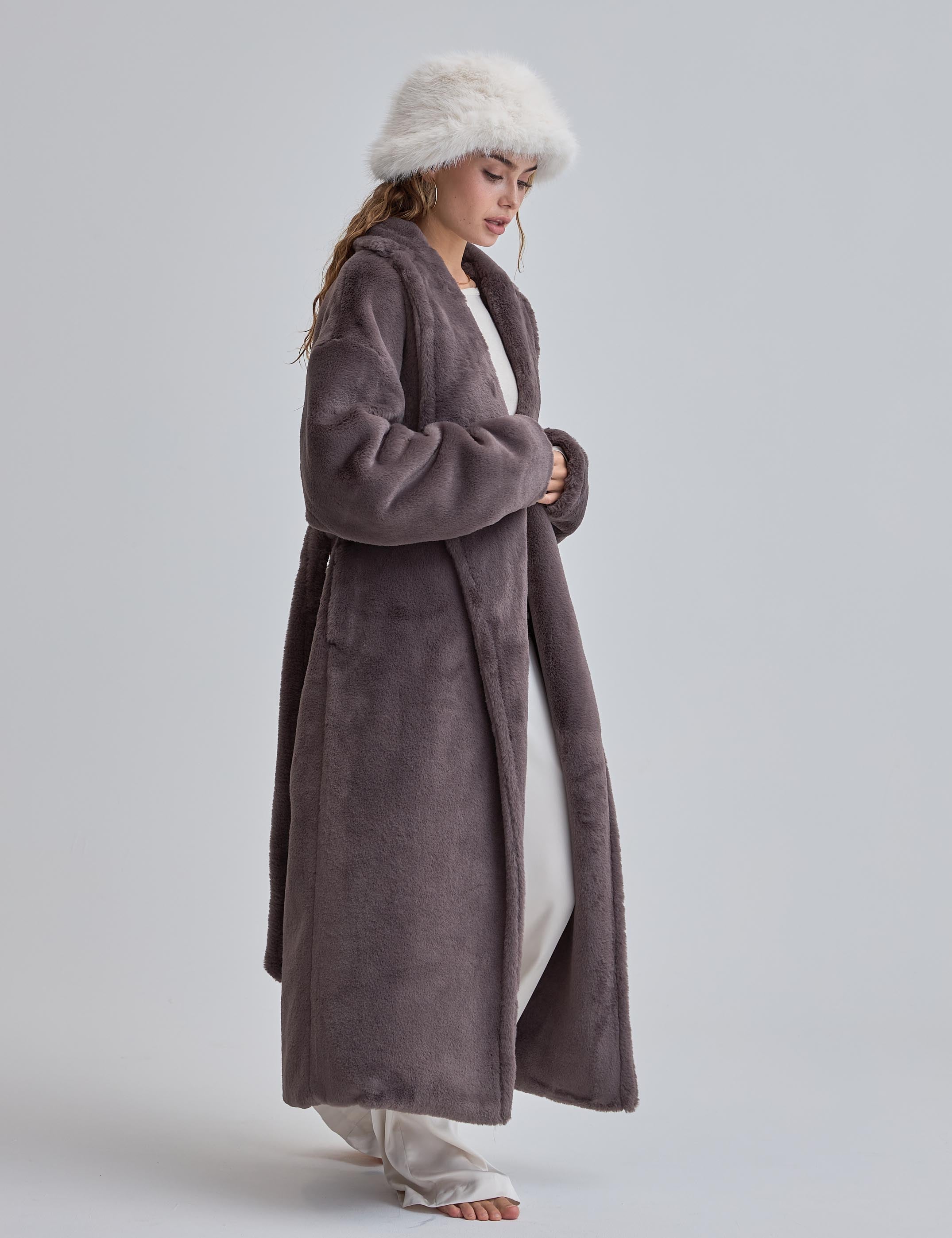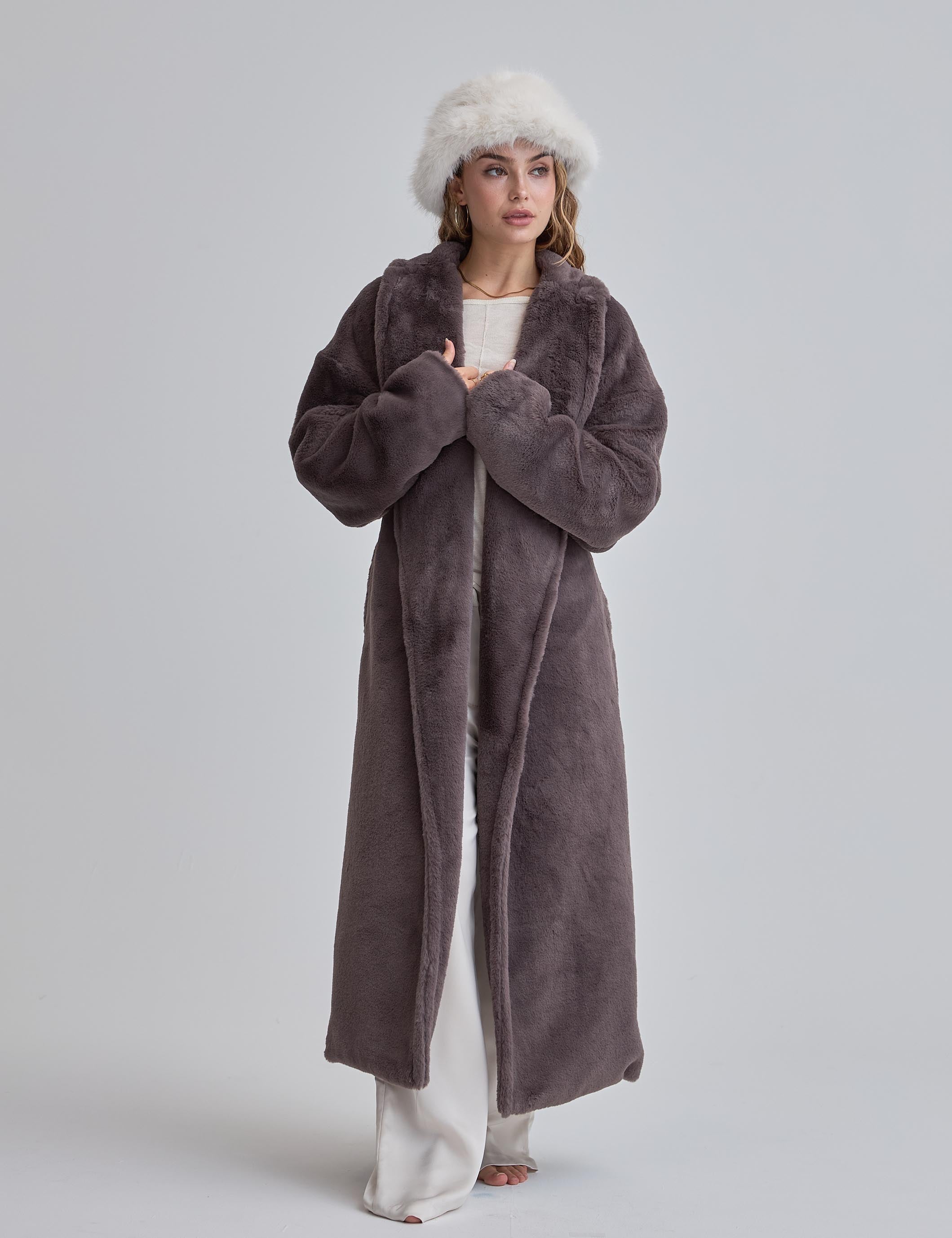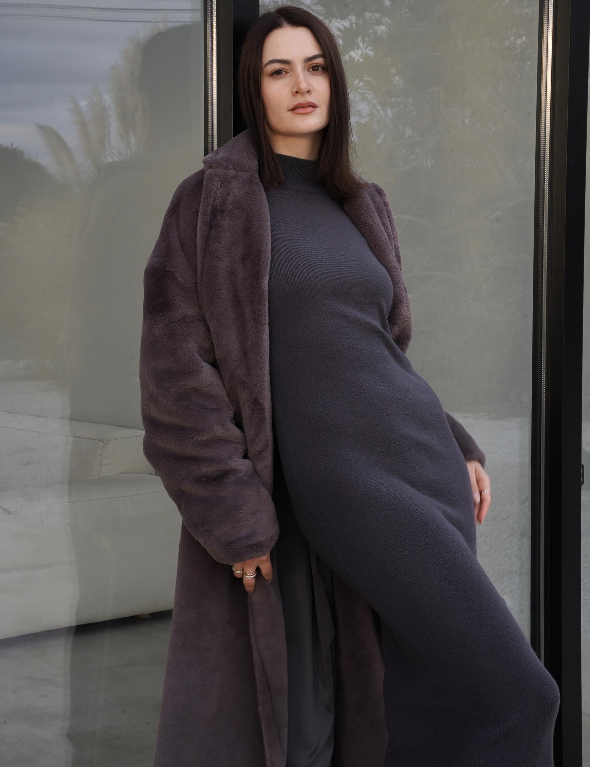 Cosy Up Premium KIMONO Fur Coat / 薄墨(gray)