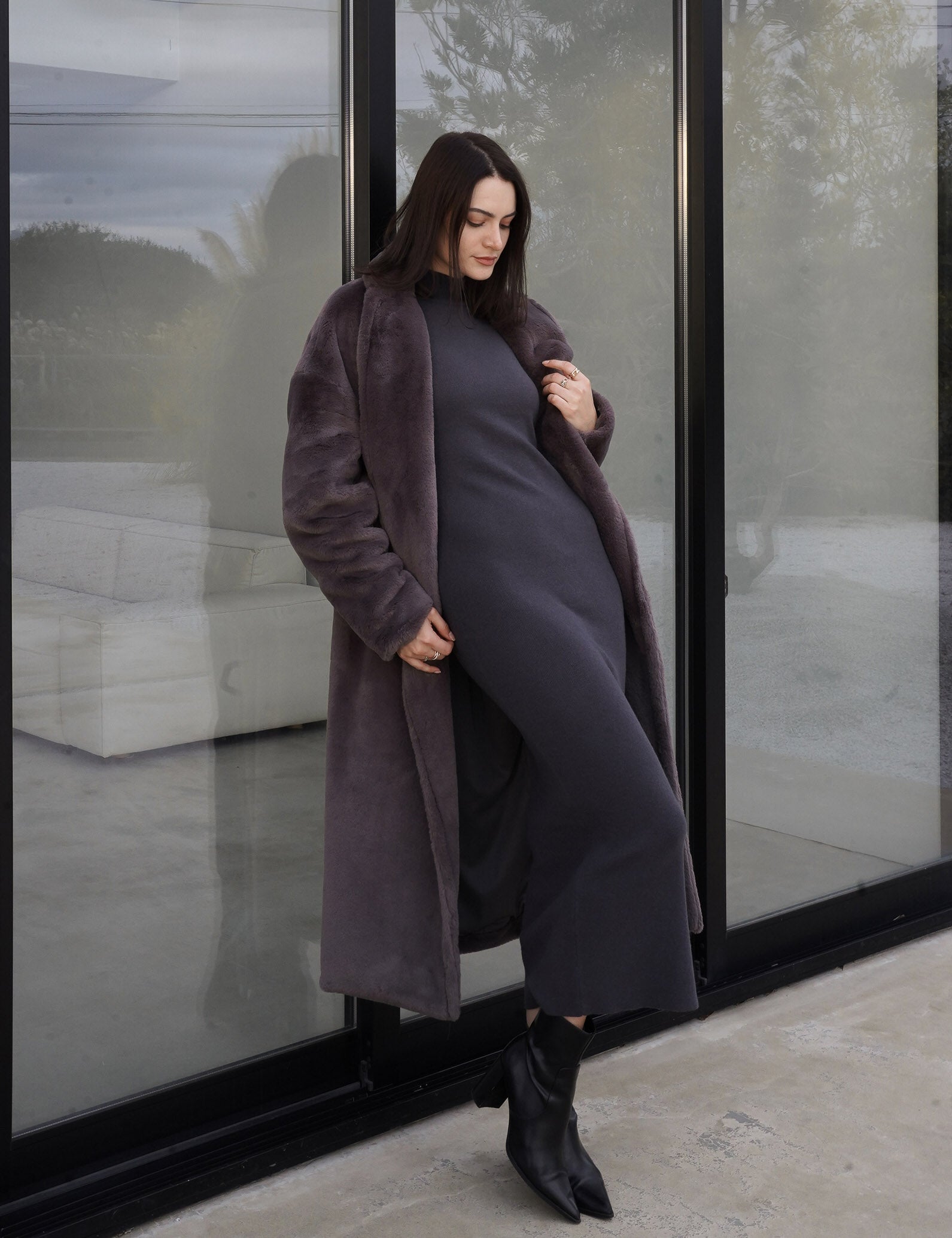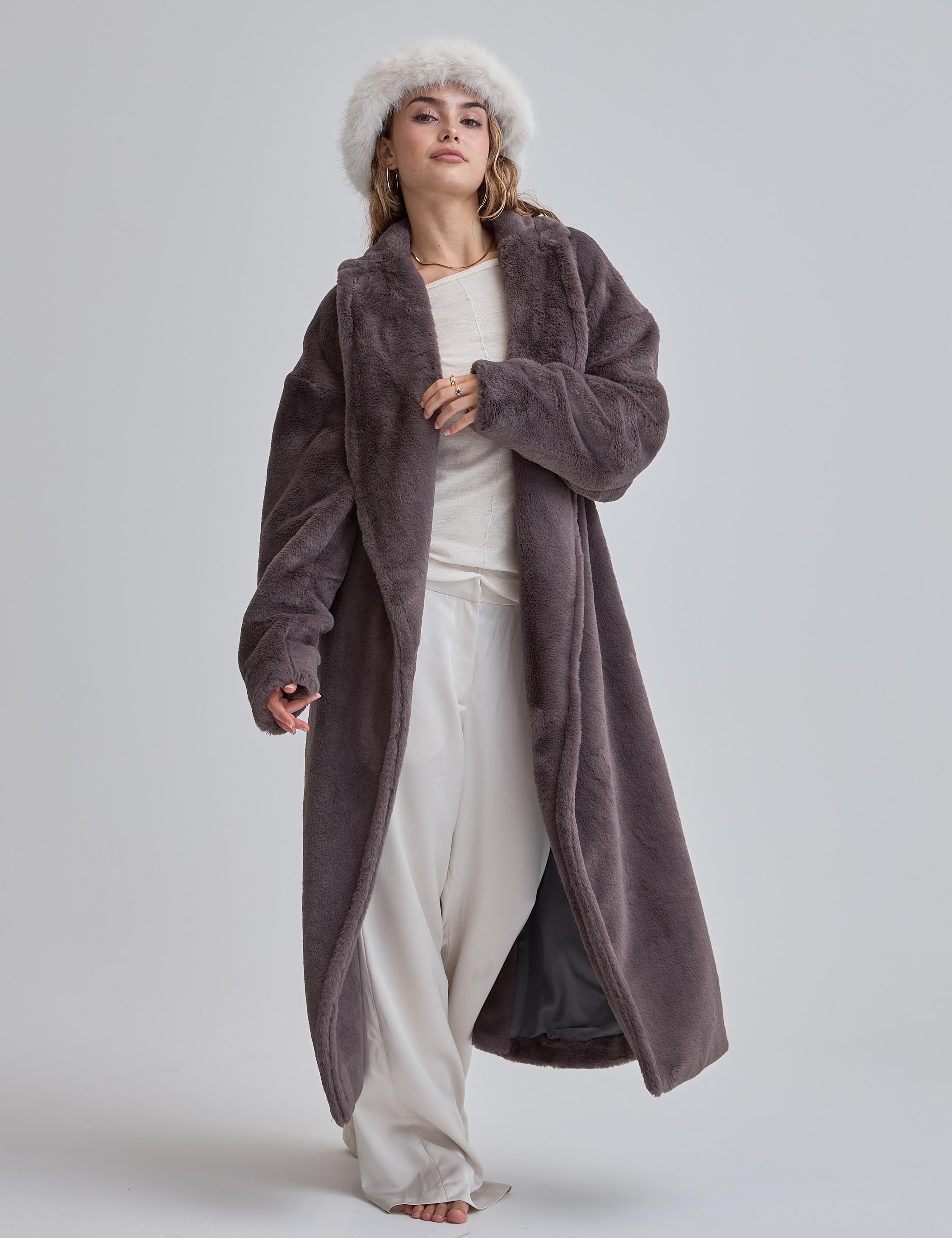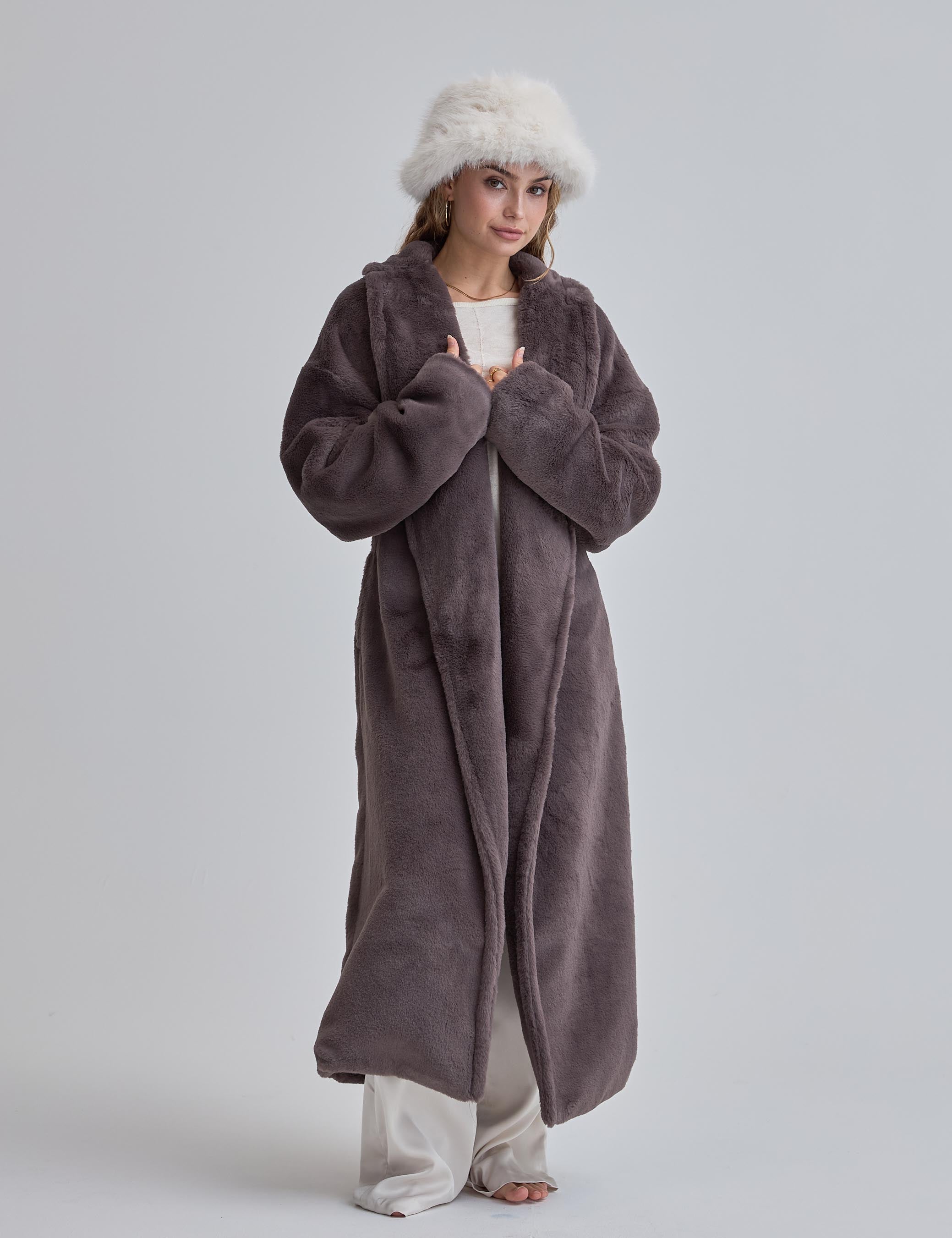 Cosy Up Premium KIMONO Fur Coat / 薄墨(gray)