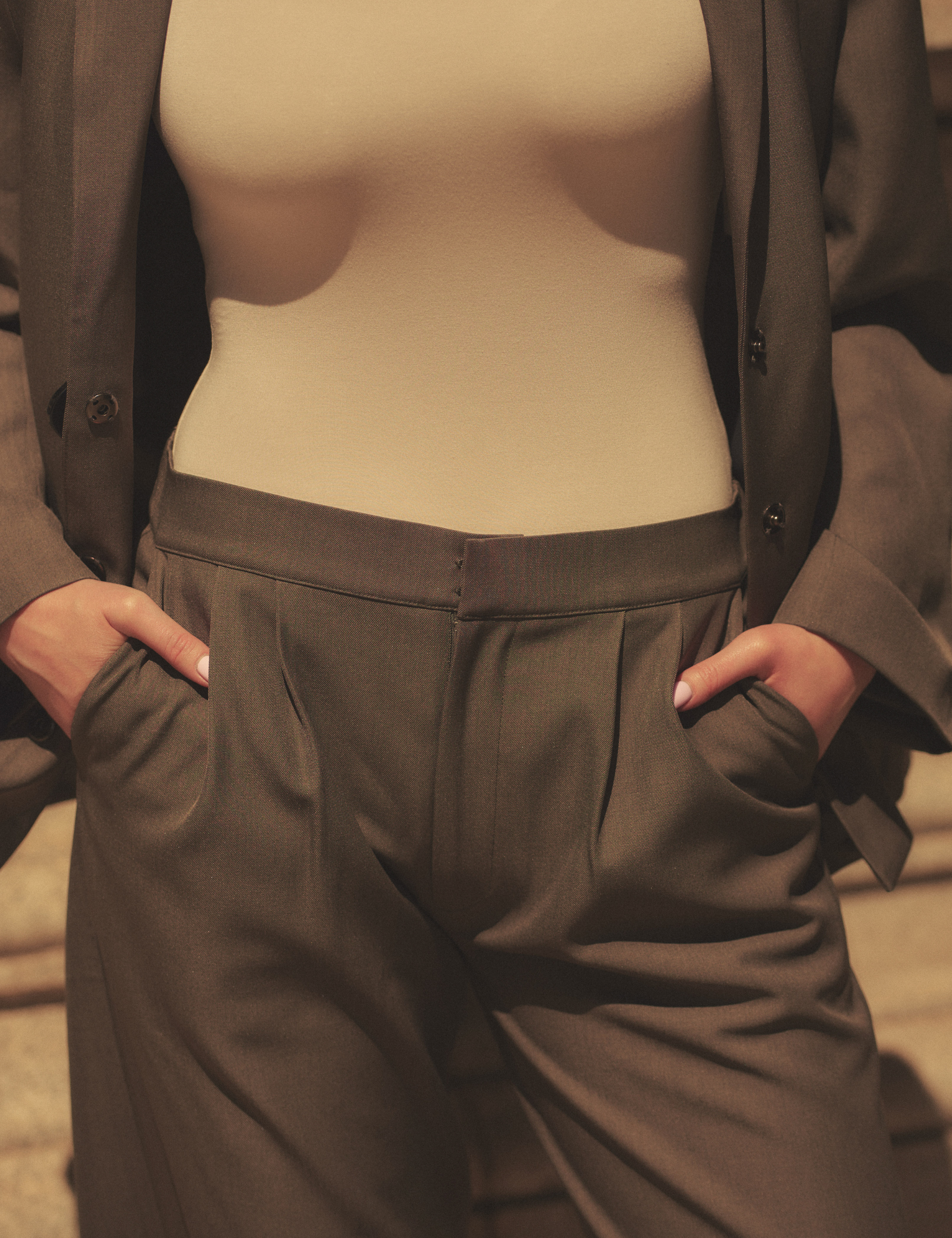 Elegant Draped Padded Long Sleeve / 亜麻色(greige)