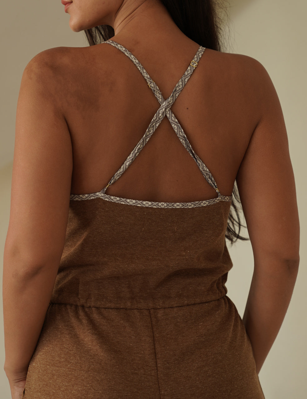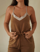 These style-up rompers are composed of a cotton-blend fabric that accentuates a V-shaped neckline and comes with adjustable spaghetti straps. They are thoughtfully and elegantly designed, including a Hanabishi pattern that traces the neckline and the hems.