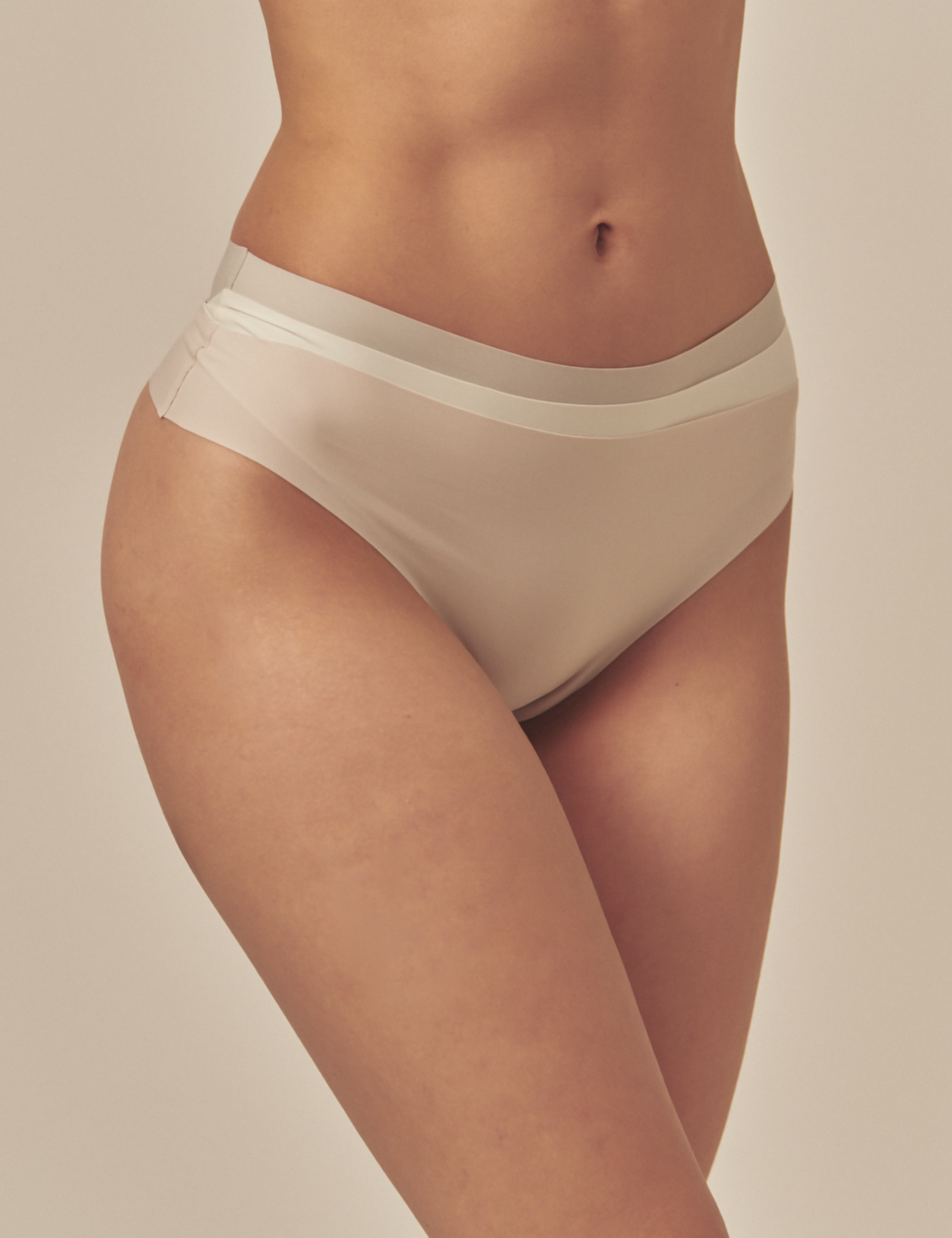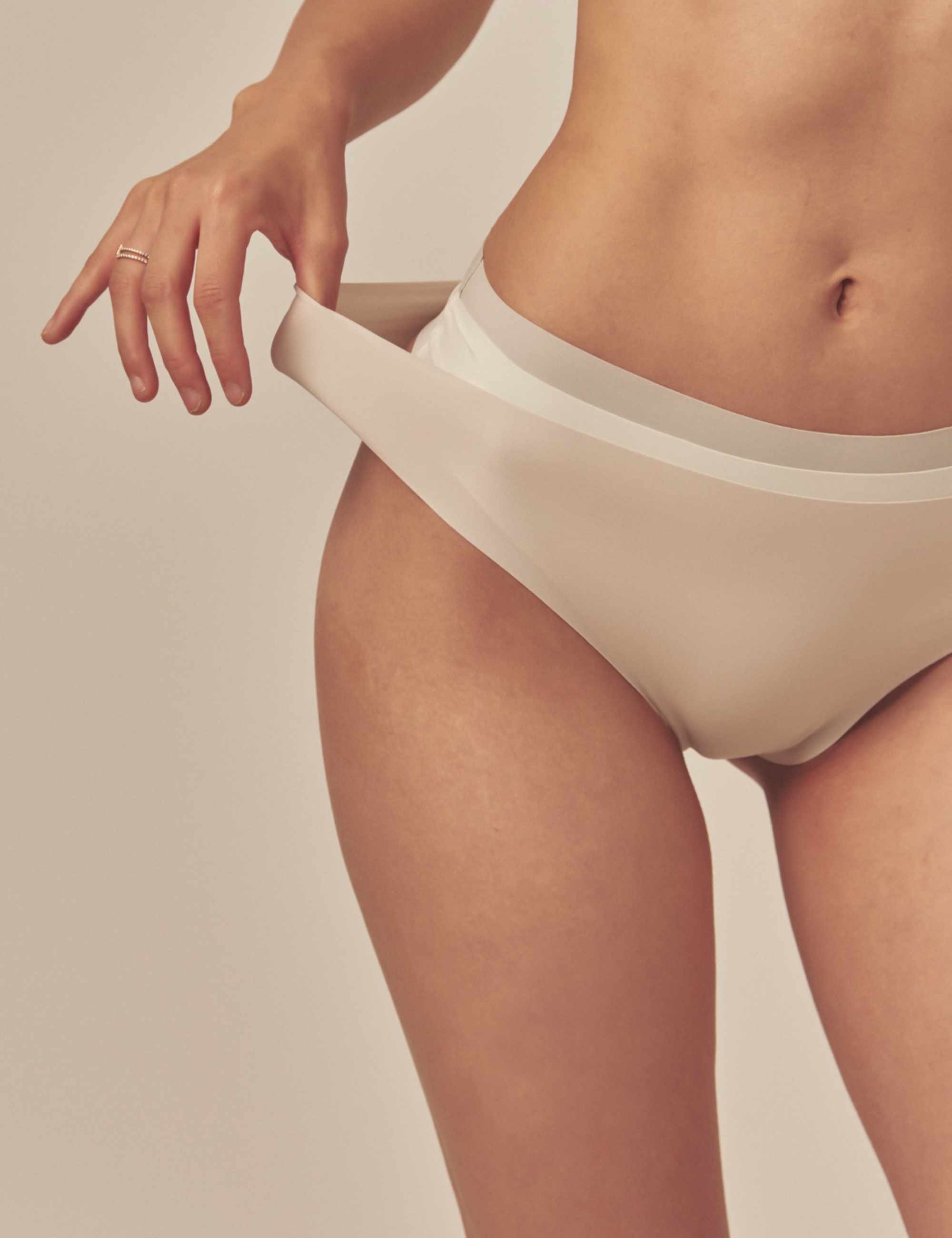 ペットボトル1本から生まれた、サステナブルな100%リサイクル素材で仕立てた、地球にも肌にも優しいショーツ。縫い目のないシームレス仕様で、WABISABI WEARやサテンパンツ、サテンドレスなど、繊細な素材のボトムスを着用する際にもラインが響かず、下着感を感じさせない美しいシルエットを保ちます。