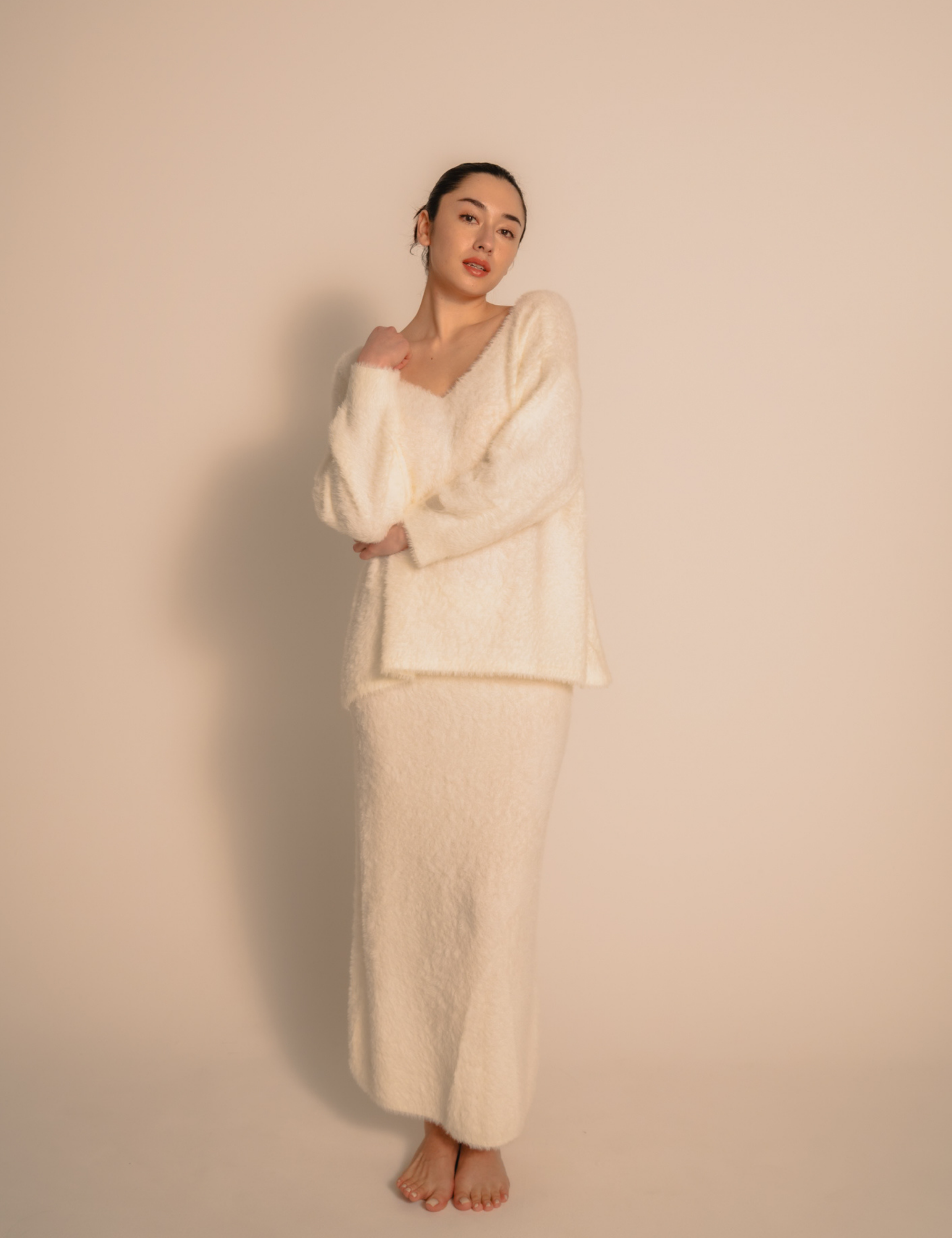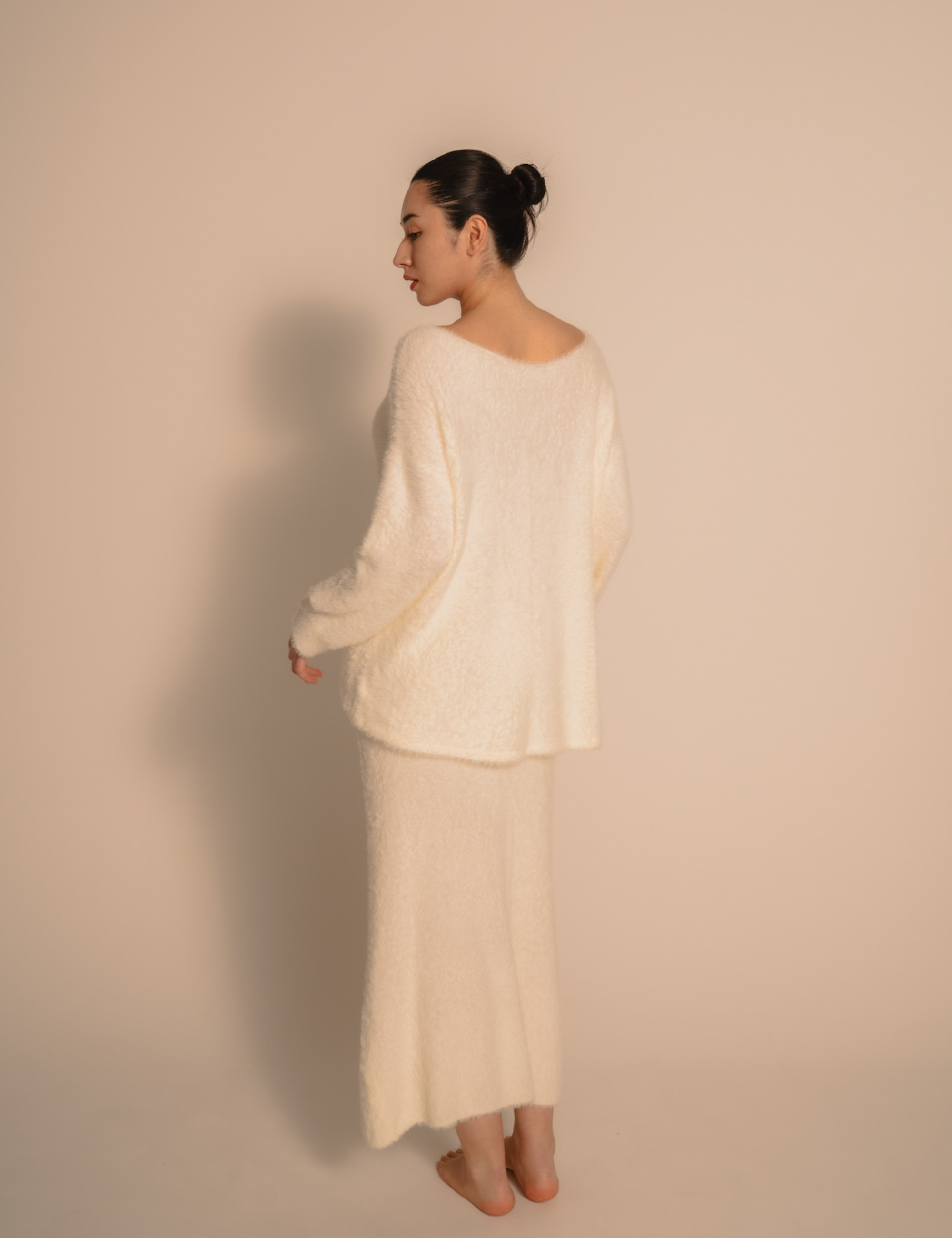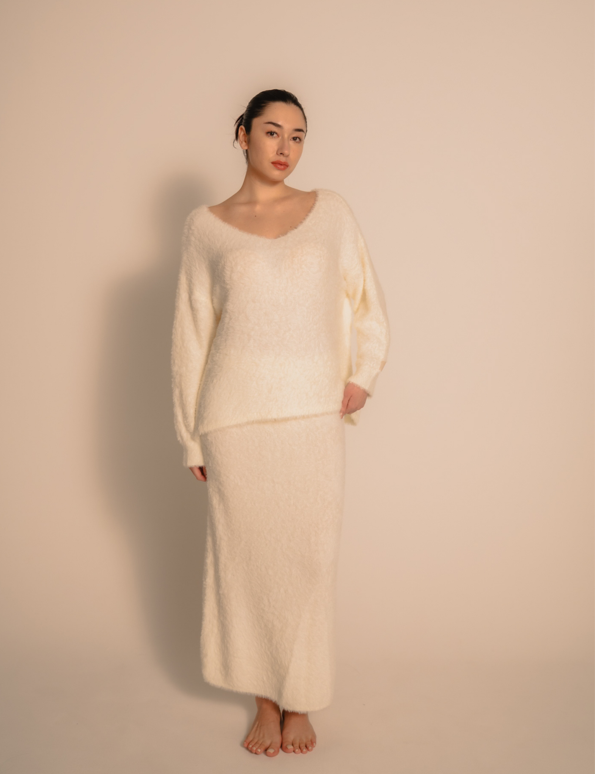 Luxe Touch Knit Maxi Skirt / 胡粉(off white)