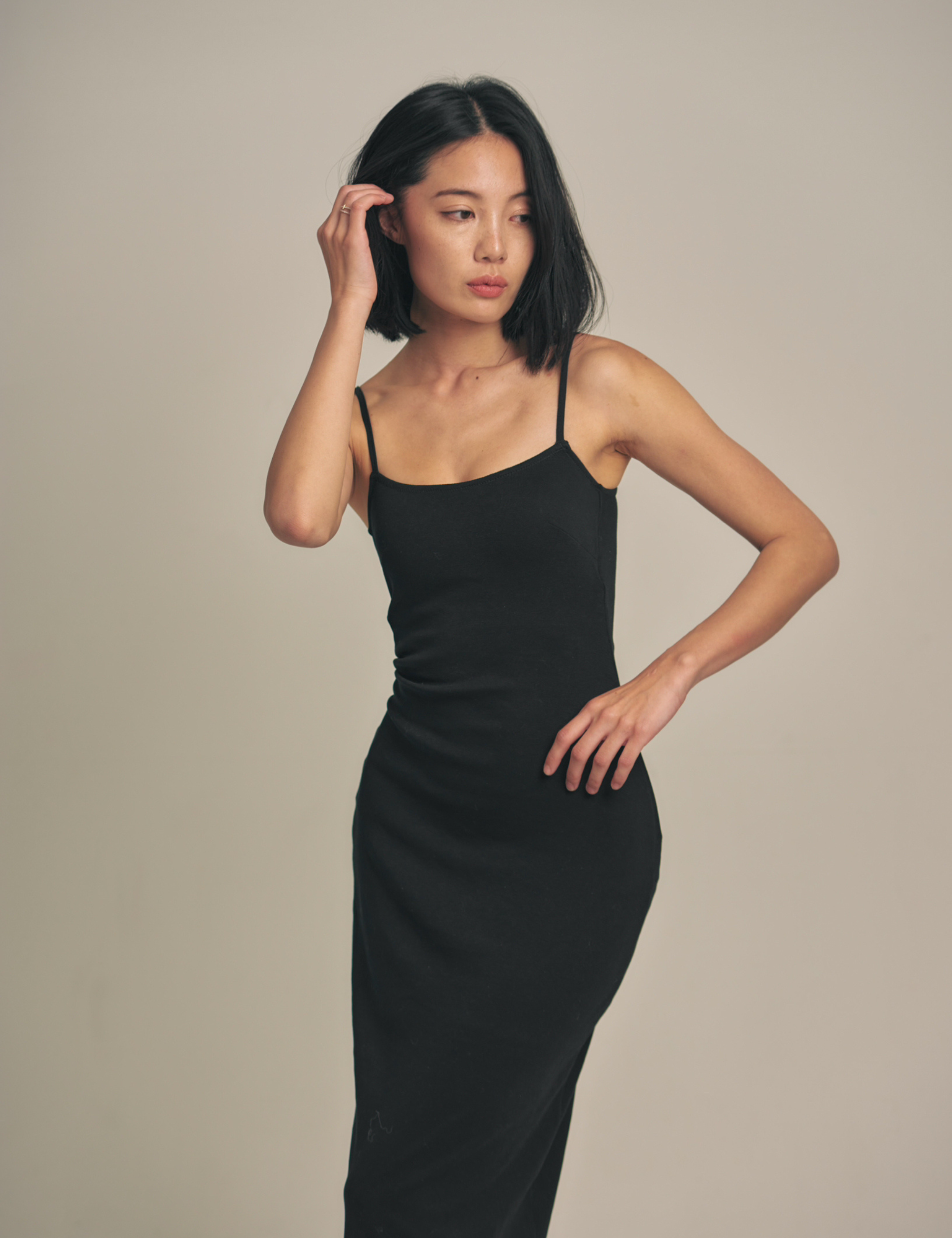 【2月中旬発送開始】Dreamy×WABISABI style up camisole dress / 墨(black)