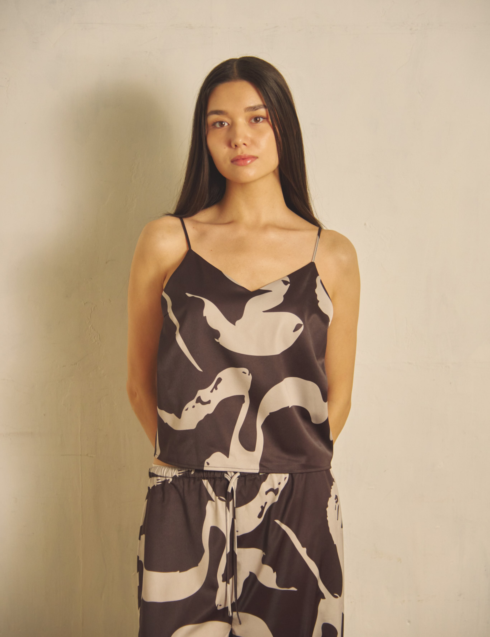 柔らかく光沢のあるシルキーサテンのナイトウェアキャミソール。