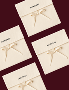 封筒のようにすっきりと折りたたんだ形に、そっとリボンを結んだ、上品なデザインです。