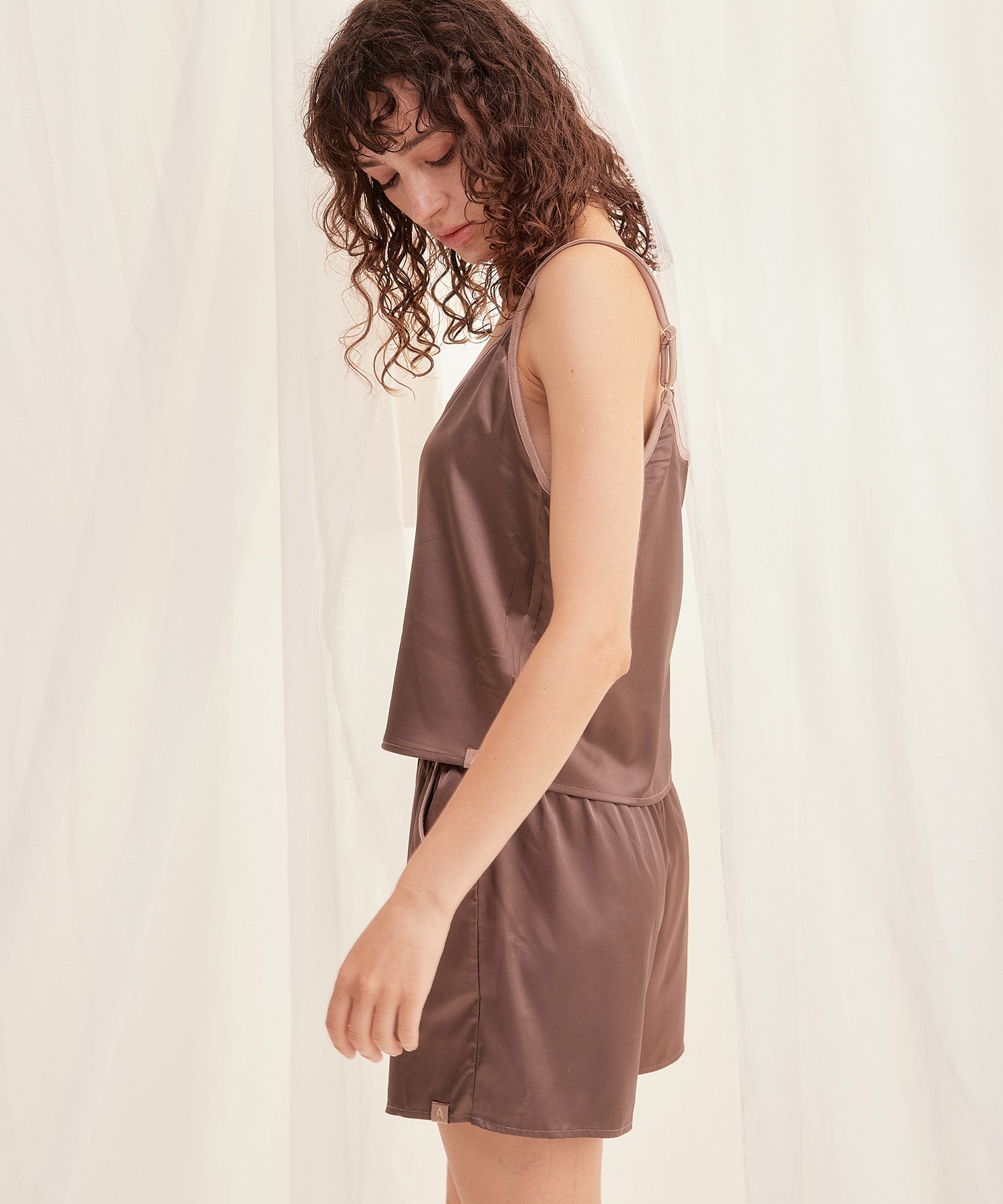 mix and match smooth satin camisole / 枯茶(dark brown)