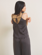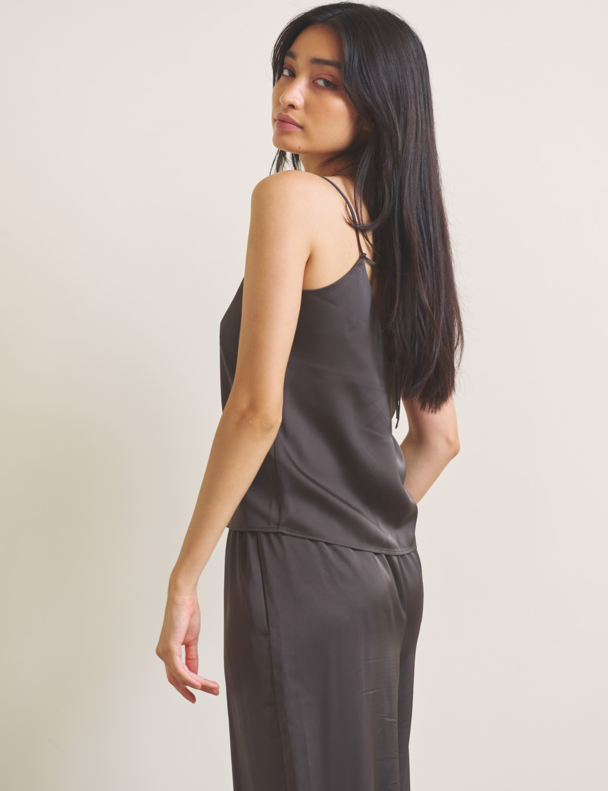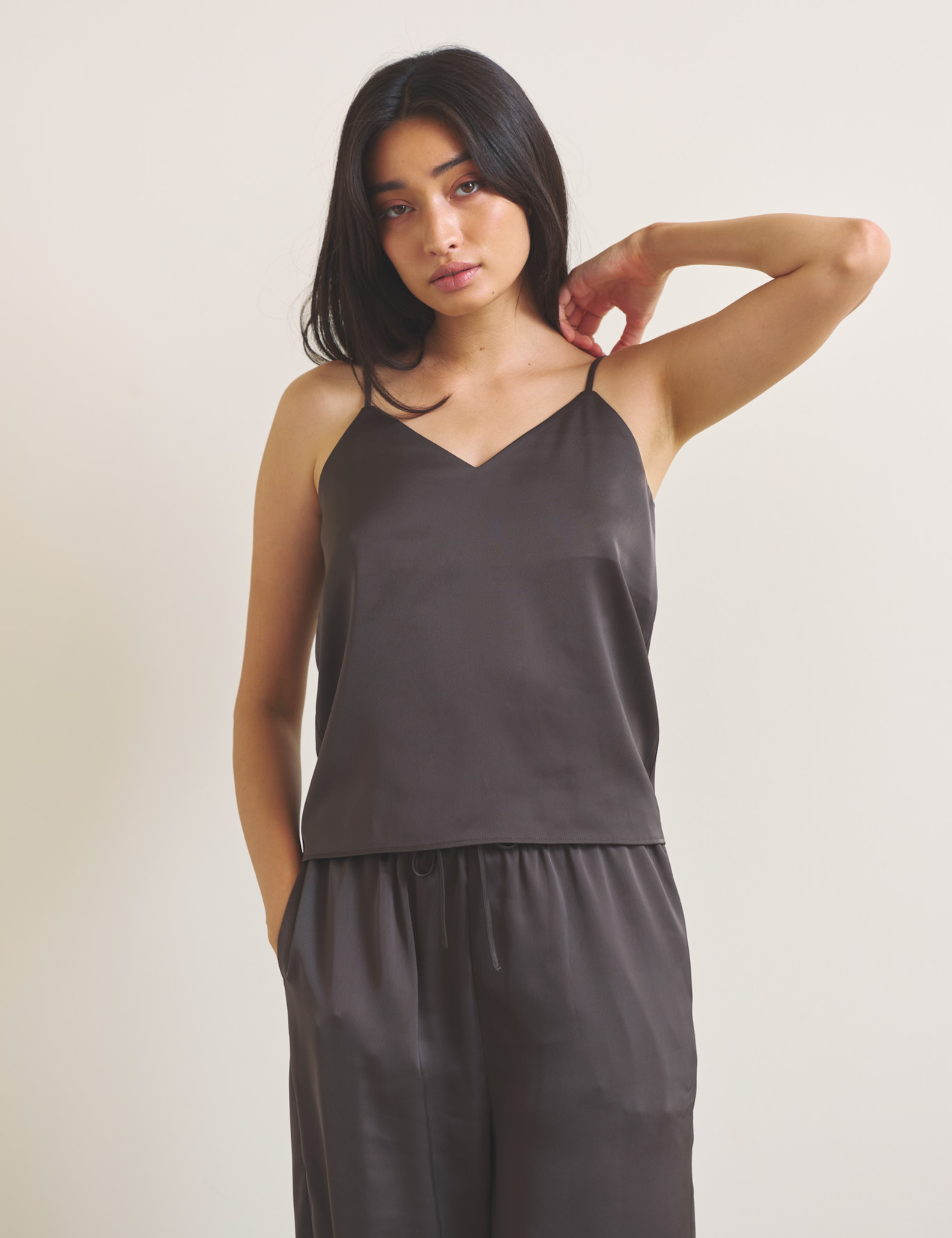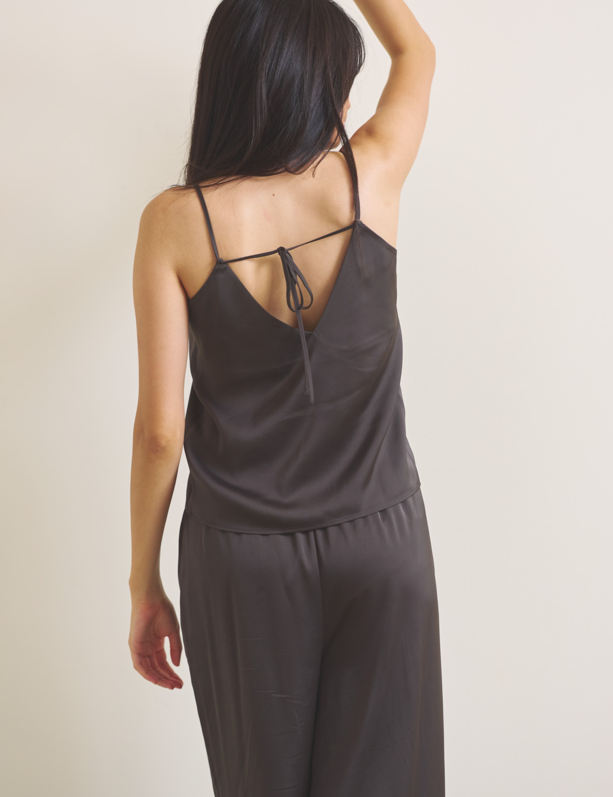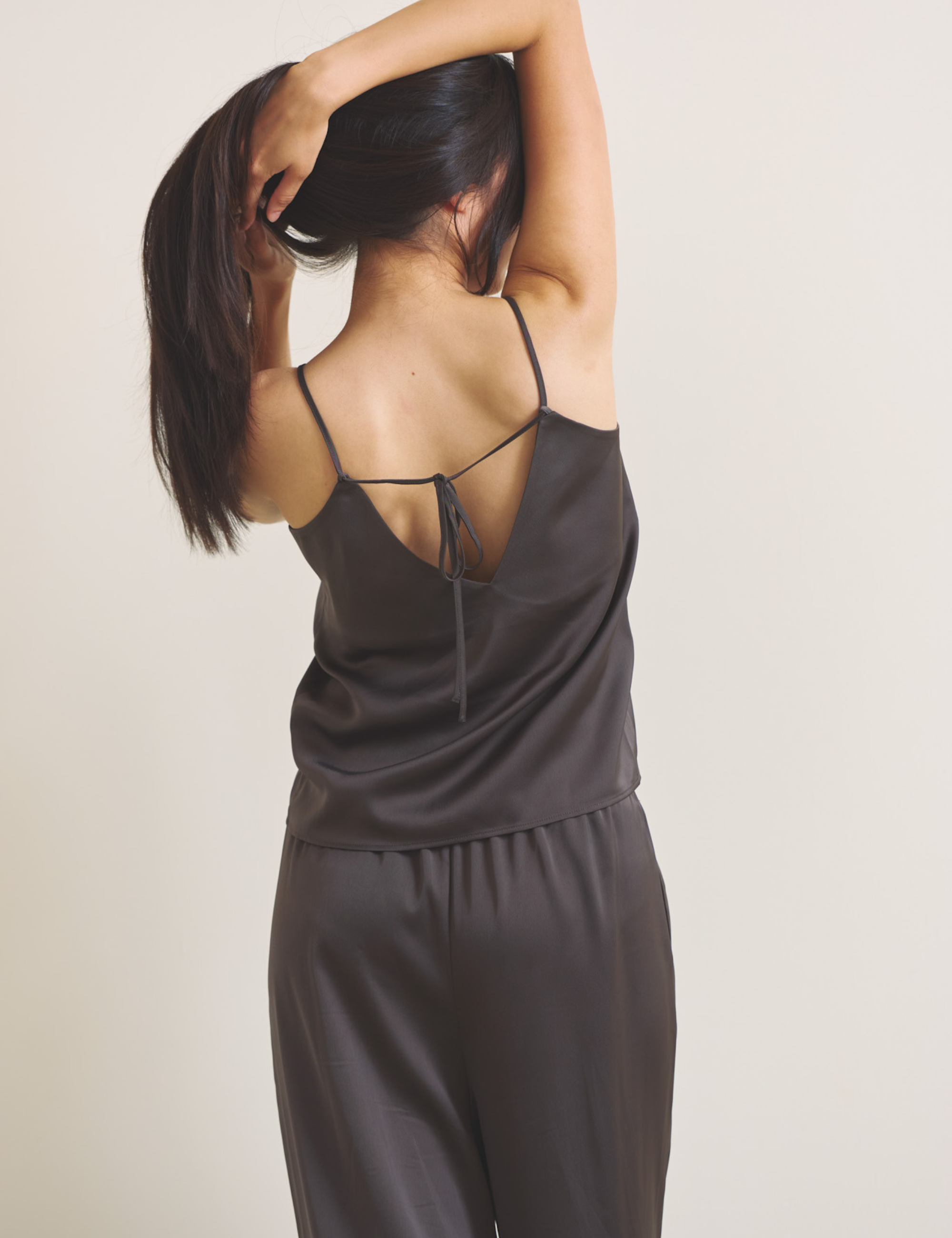 柔らかな光沢としなやかな素材感が魅力の、上質サテンキャミソール。