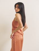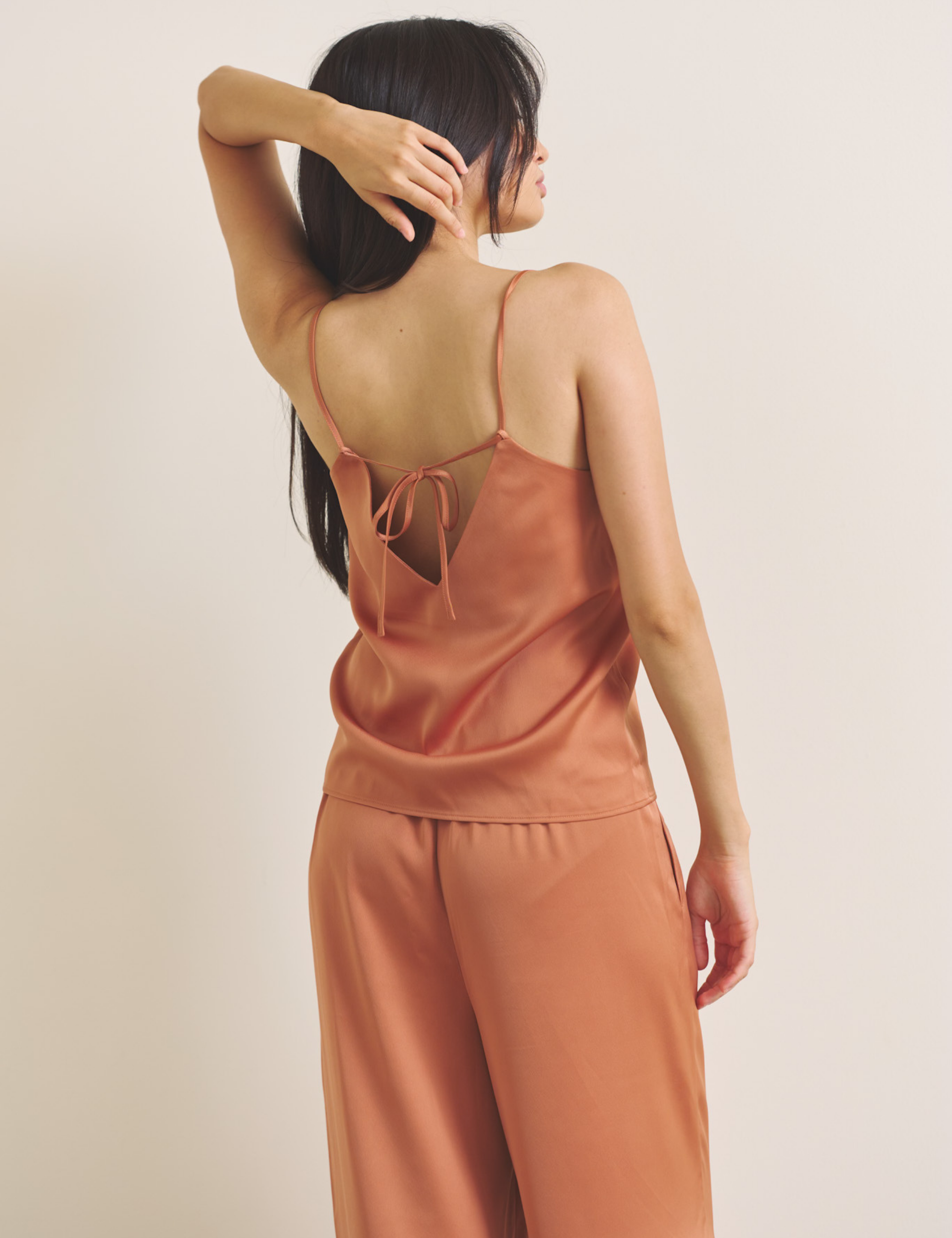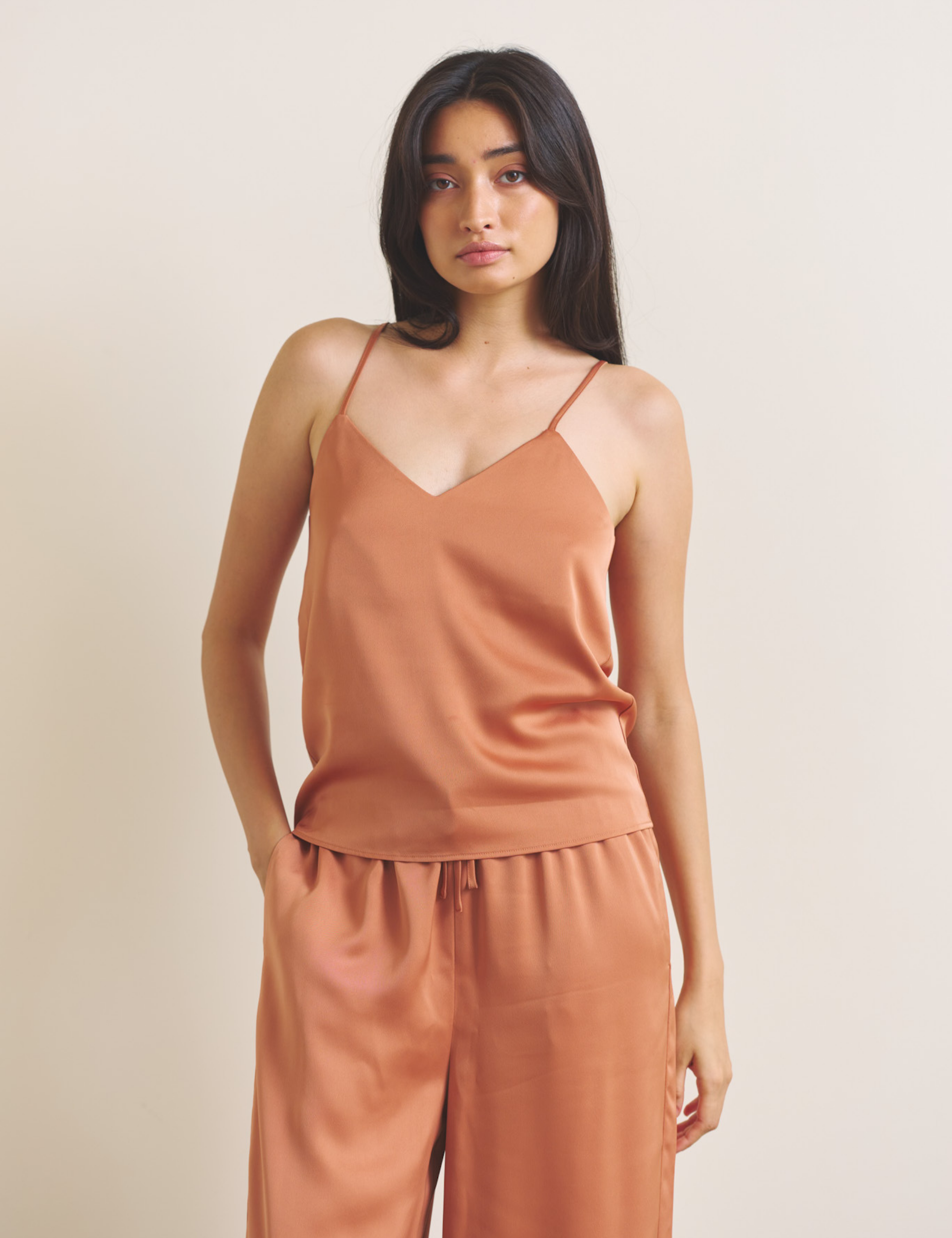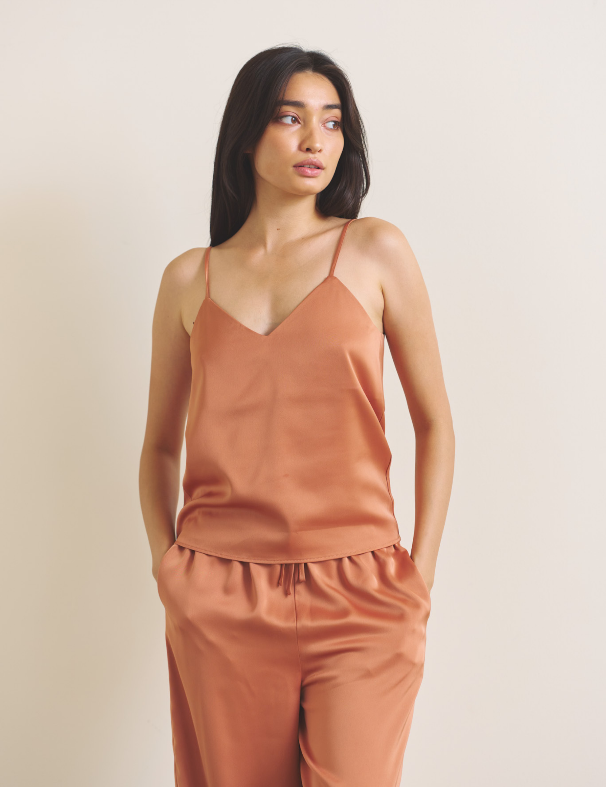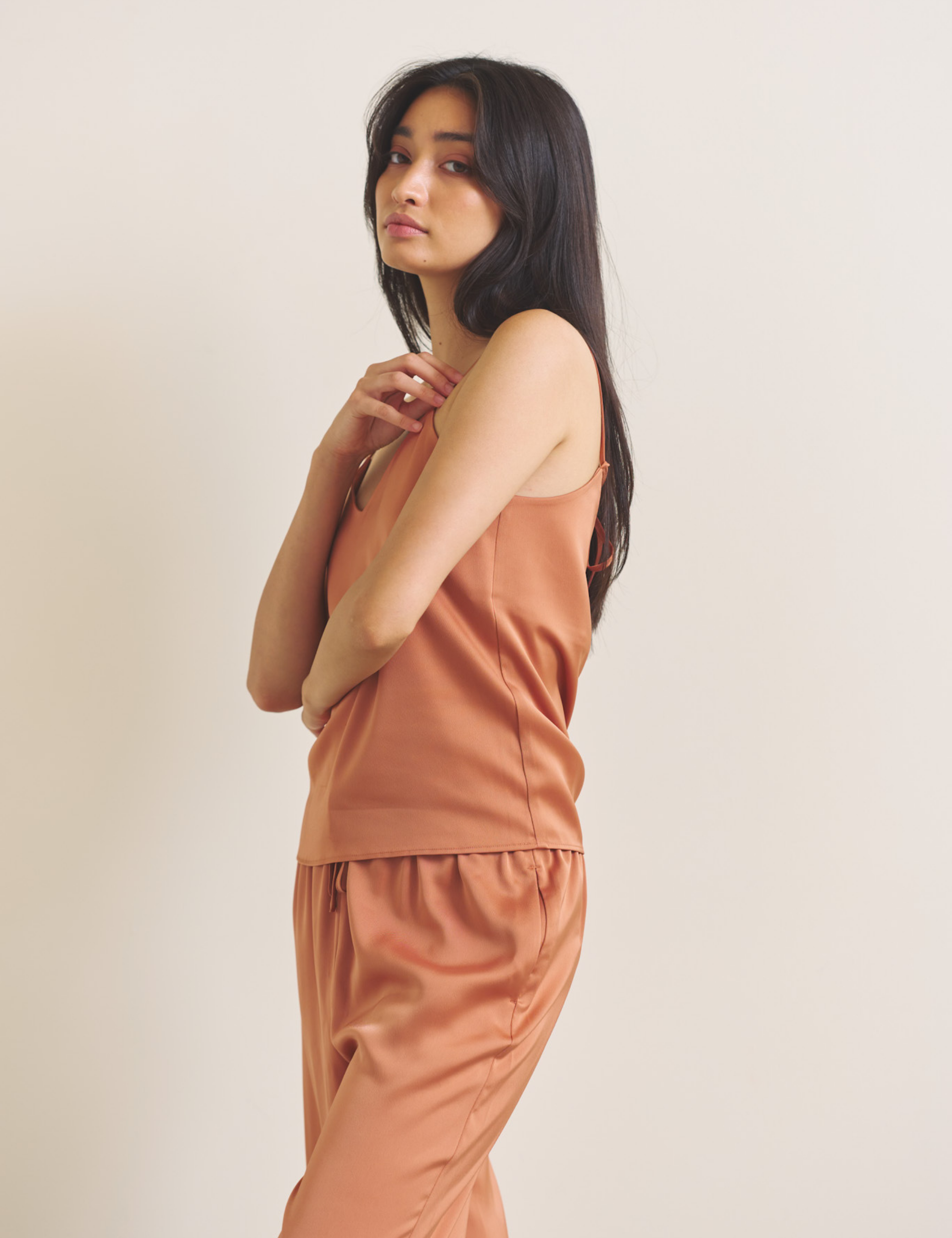 柔らかな光沢としなやかな素材感が魅力の、上質サテンキャミソール。