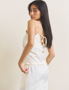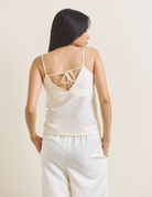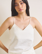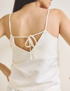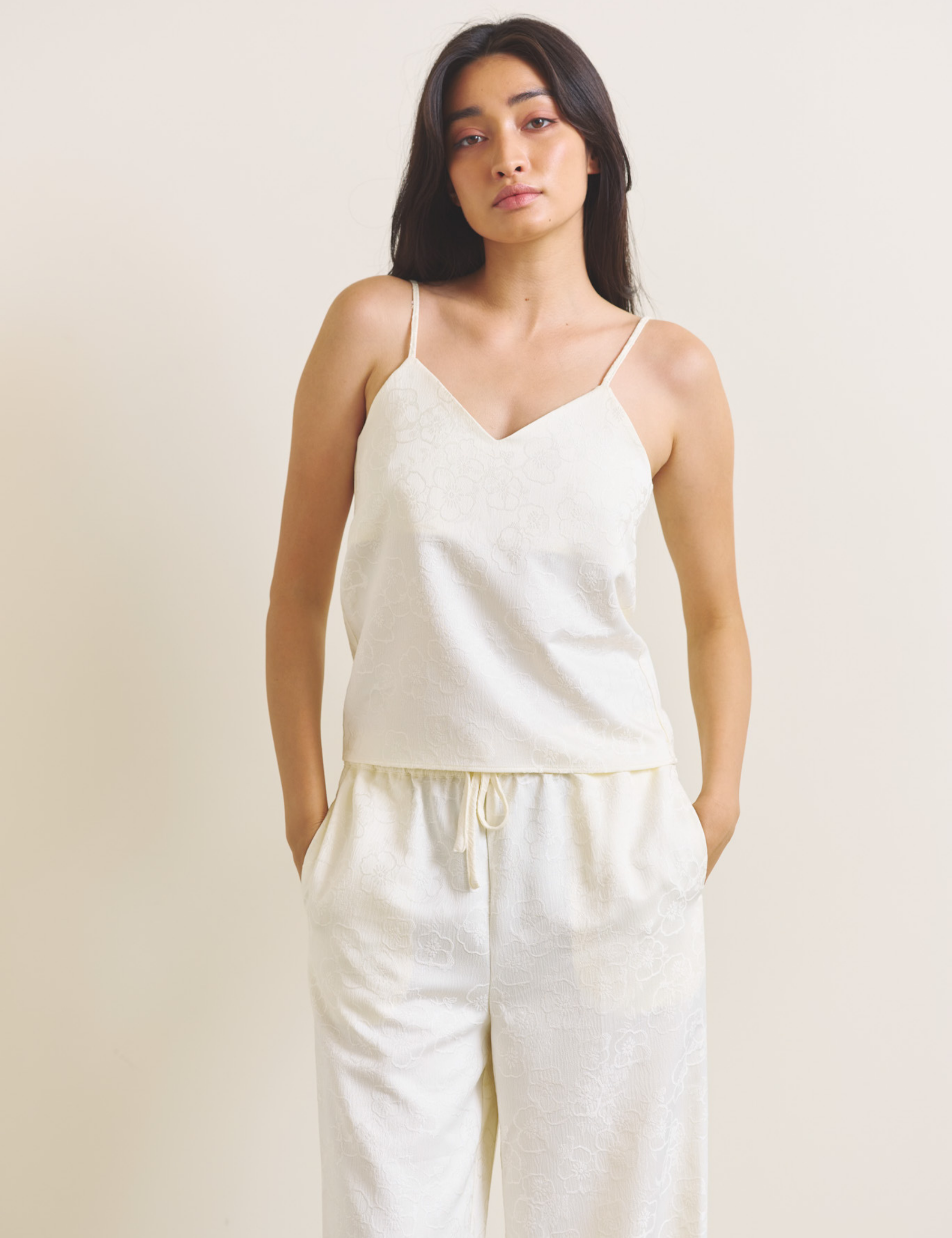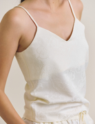 上質な光沢と繊細な梅柄ジャガードが映える、エレガントなサテンキャミソール。