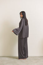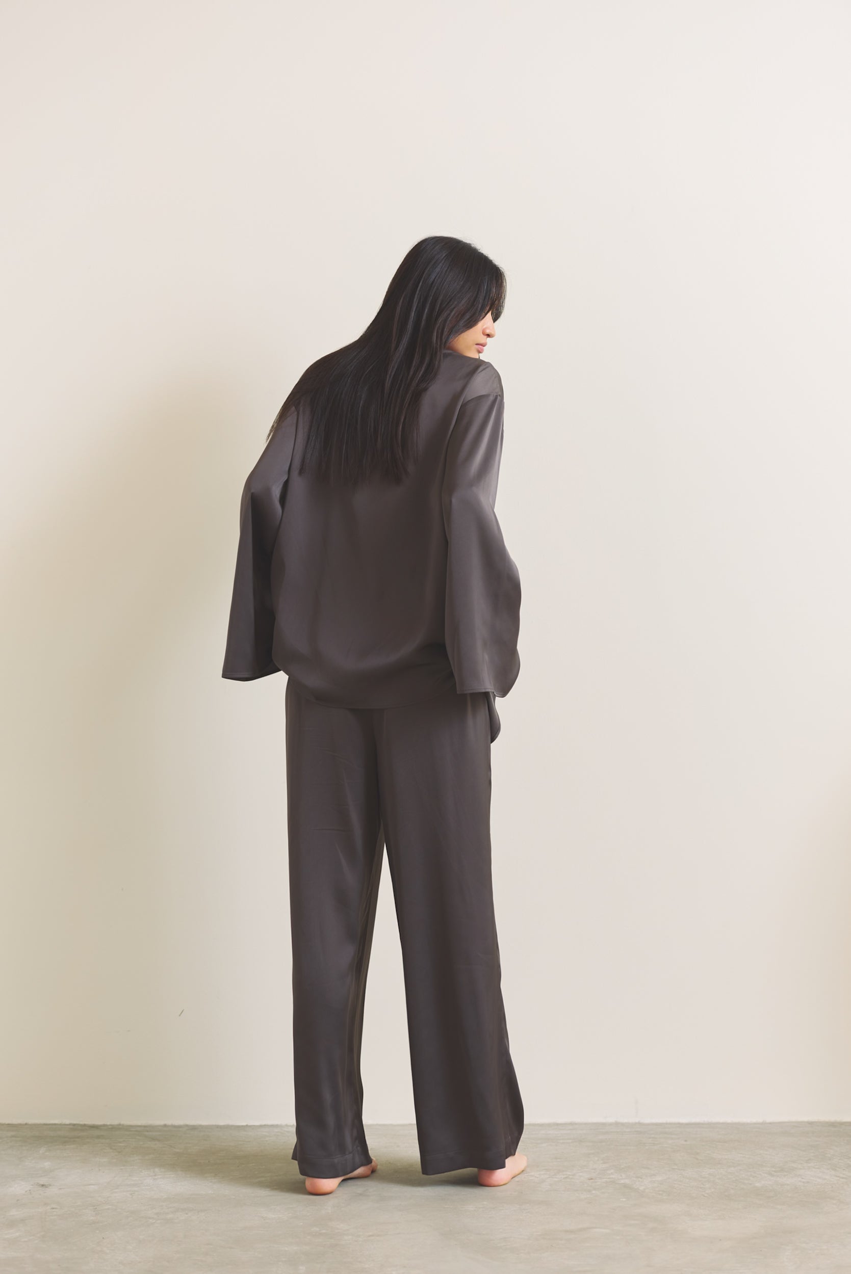 肌にすっと馴染むなめらかなサテン素材を使用し、軽やかな着心地を実現。