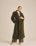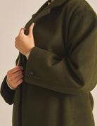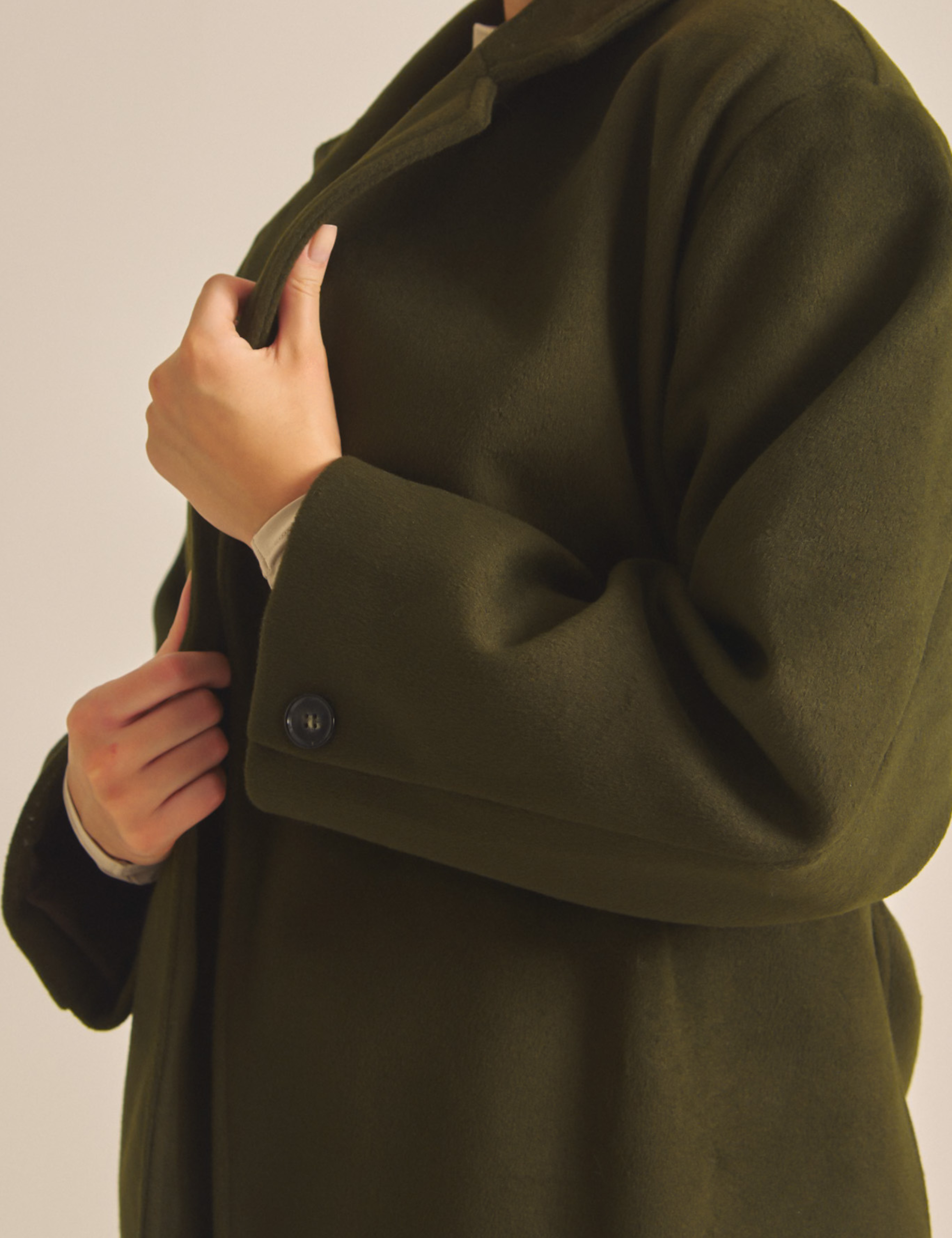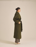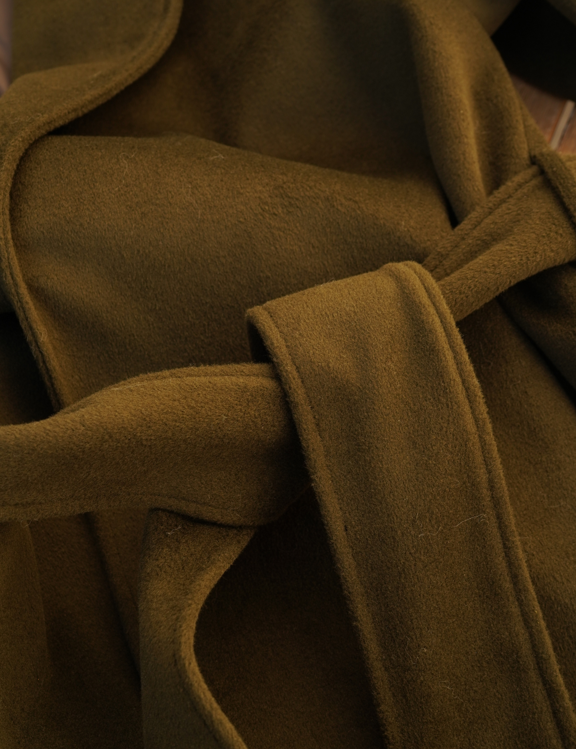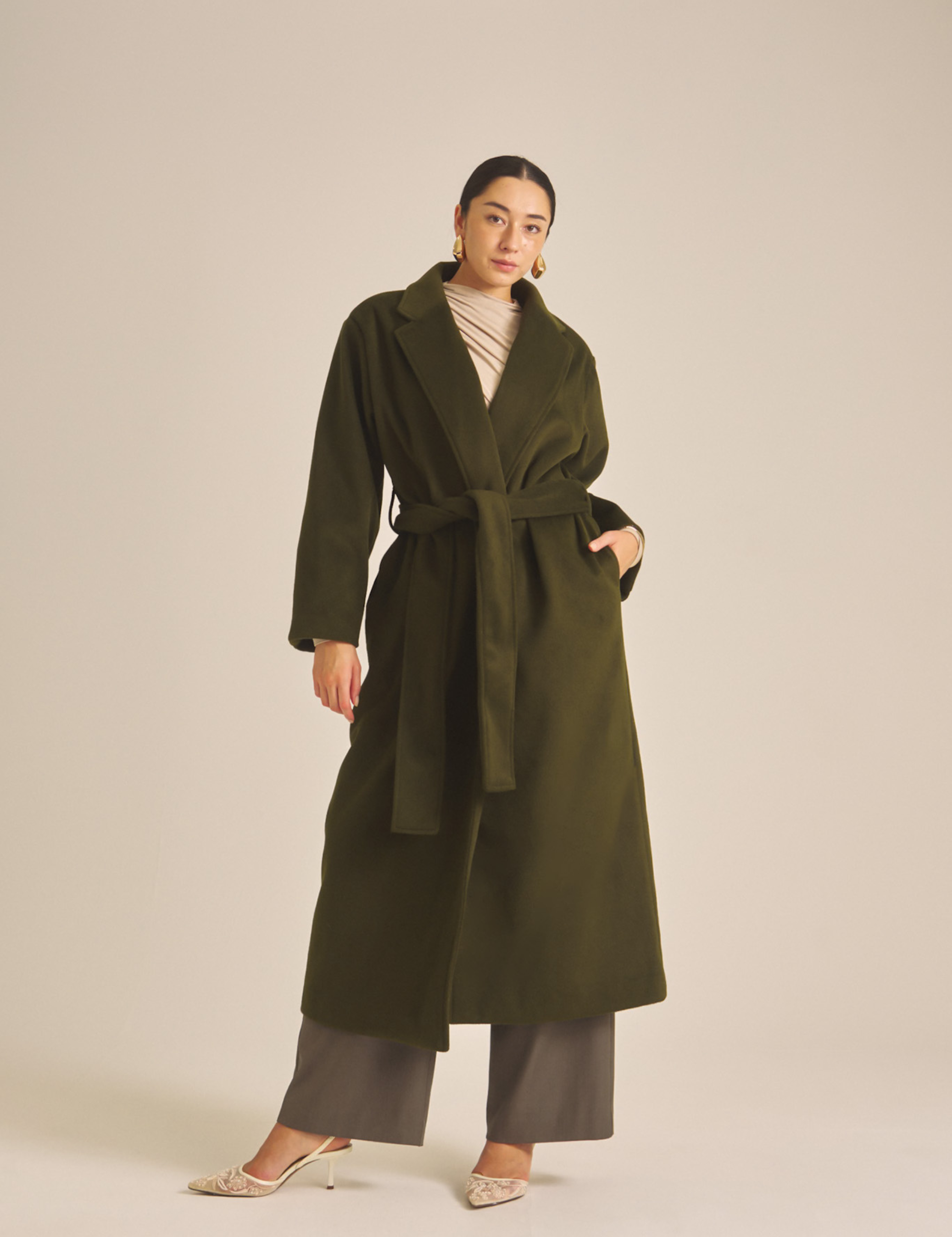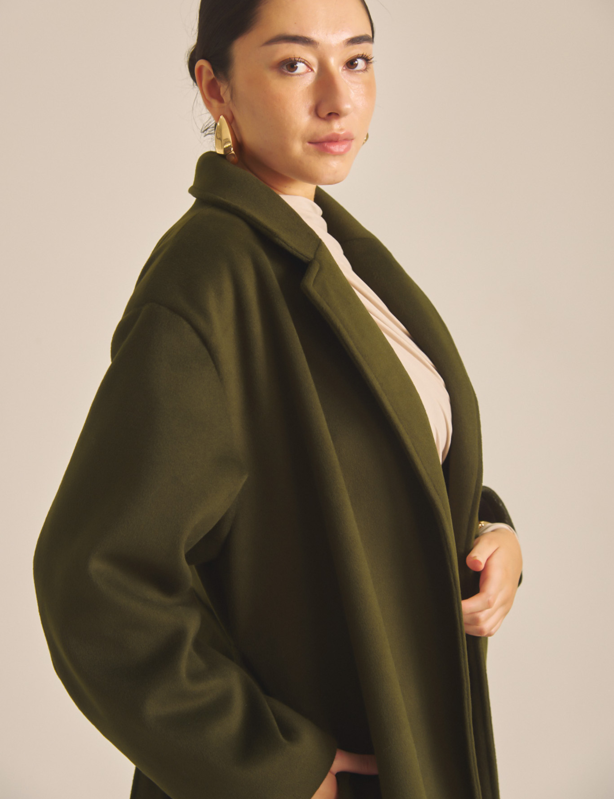 WABISABIらしい繊細な色使いが魅力のメルトン素材を使用した、エレガントなロングコート。