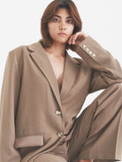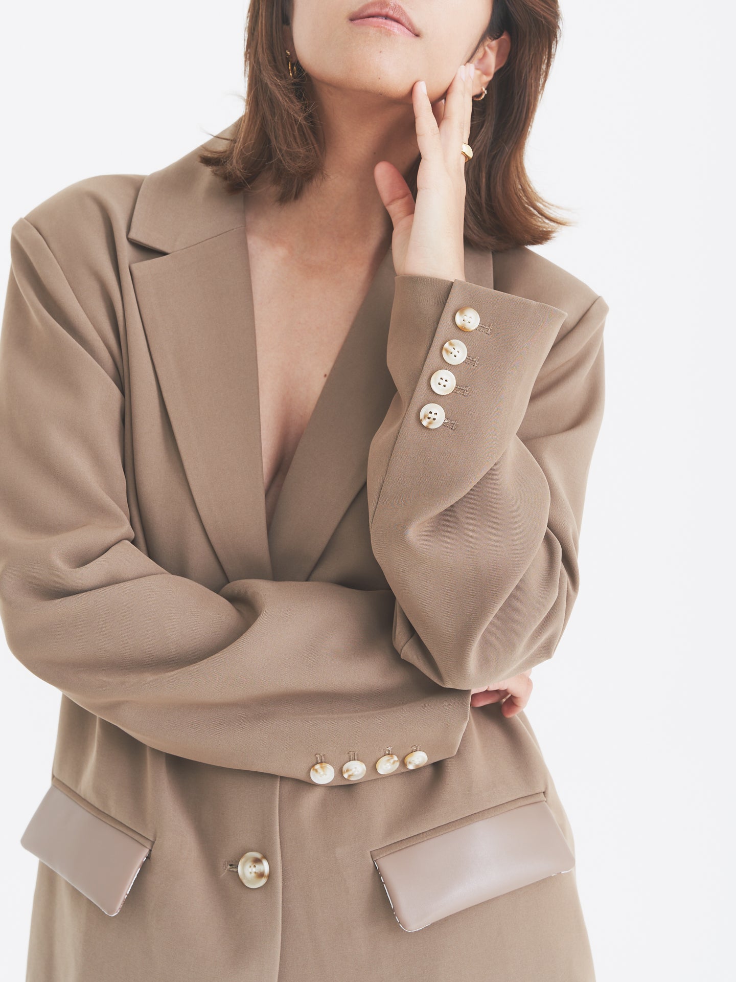 トレンドのビッグシルエットスタイルを上品に仕上げるジャケット。