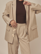 AMATERASオリジナルの特別な生地を使用。さらっとしながらも、もちっとした独特の肌触りが特徴。通気性とストレッチ性に優れ、春夏のシーズンに快適な着心地を提供。軽やかでありながら適度なハリ感もあり、美しいシルエットをキープ。
