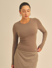 WABISABIオリジナル生地を使用。まるで“butter cream”のようにしっとりとなめらかな質感で、素肌をやさしく包み込みます。ほどよい厚みと伸縮性を備え、ボディラインに美しくフィットしながらも快適な着心地を叶えます。