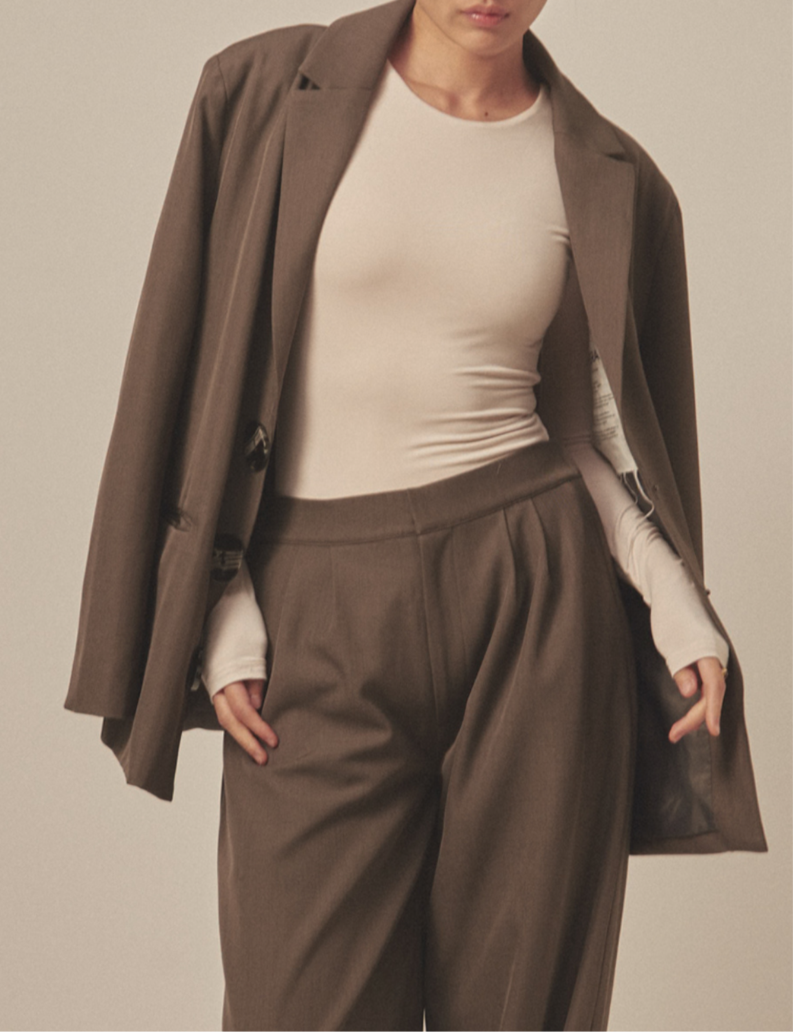 Elegant Draped Padded Long Sleeve / 葡萄茶(burgundy)