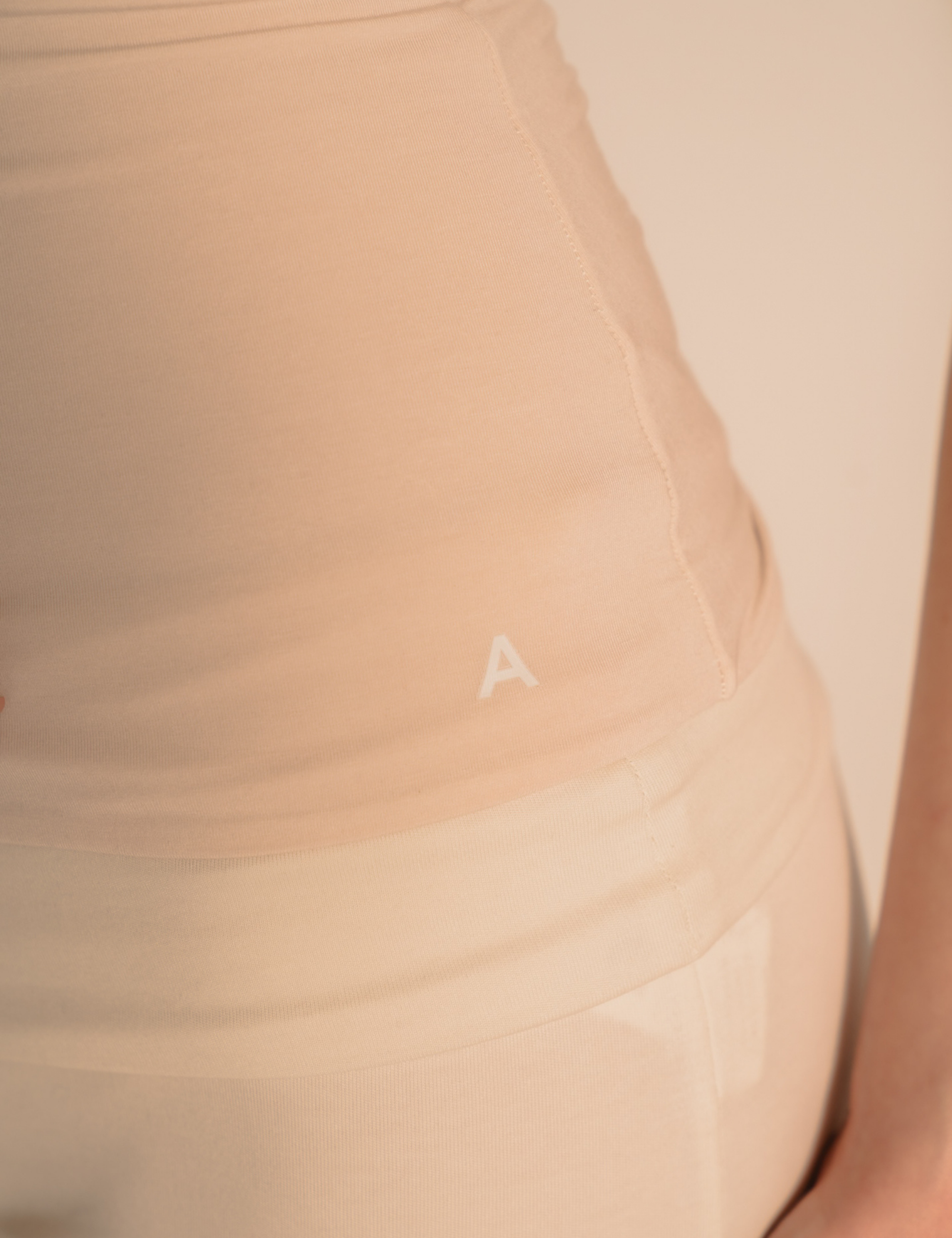 AMATERASオリジナルの特別な生地を使用。さらっとしながらも、もちっとした独特の肌触りが特徴。通気性とストレッチ性に優れ、春夏のシーズンに快適な着心地を提供。軽やかでありながら適度なハリ感もあり、美しいシルエットをキープ。