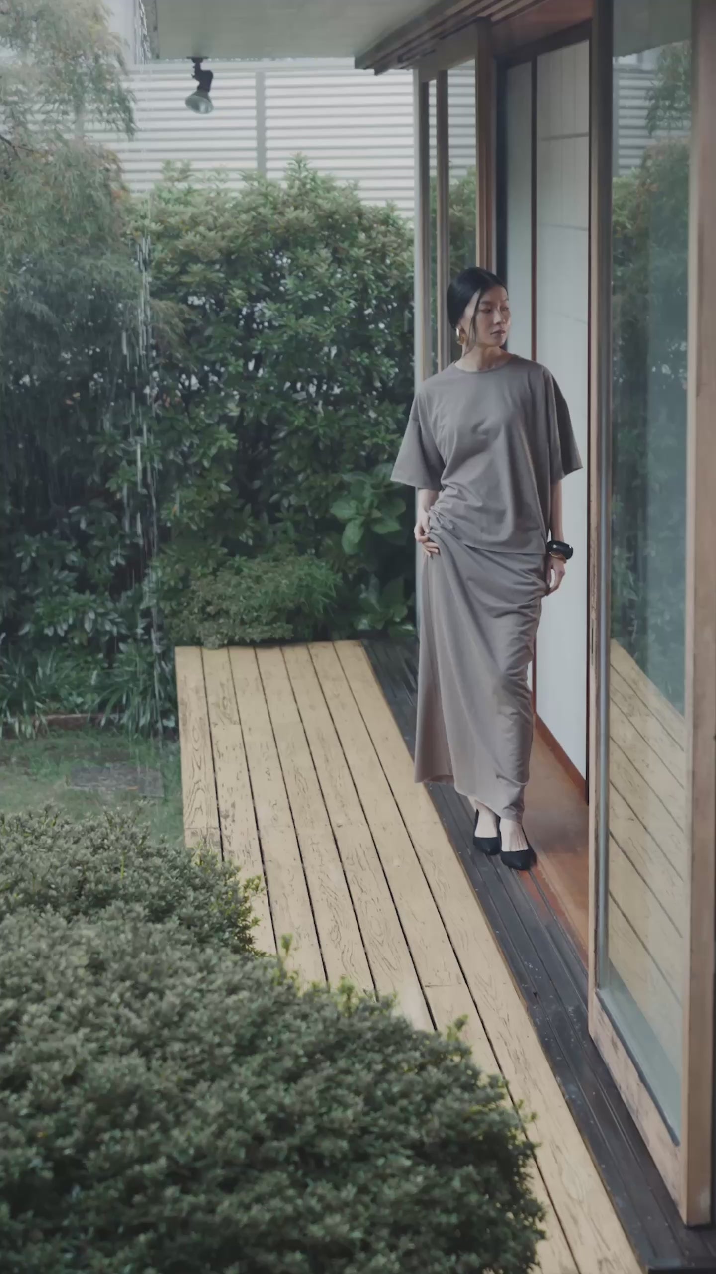 ミニマルなデザインだからこそ、スタイリング次第で幅広い表情を楽しめるTシャツです。