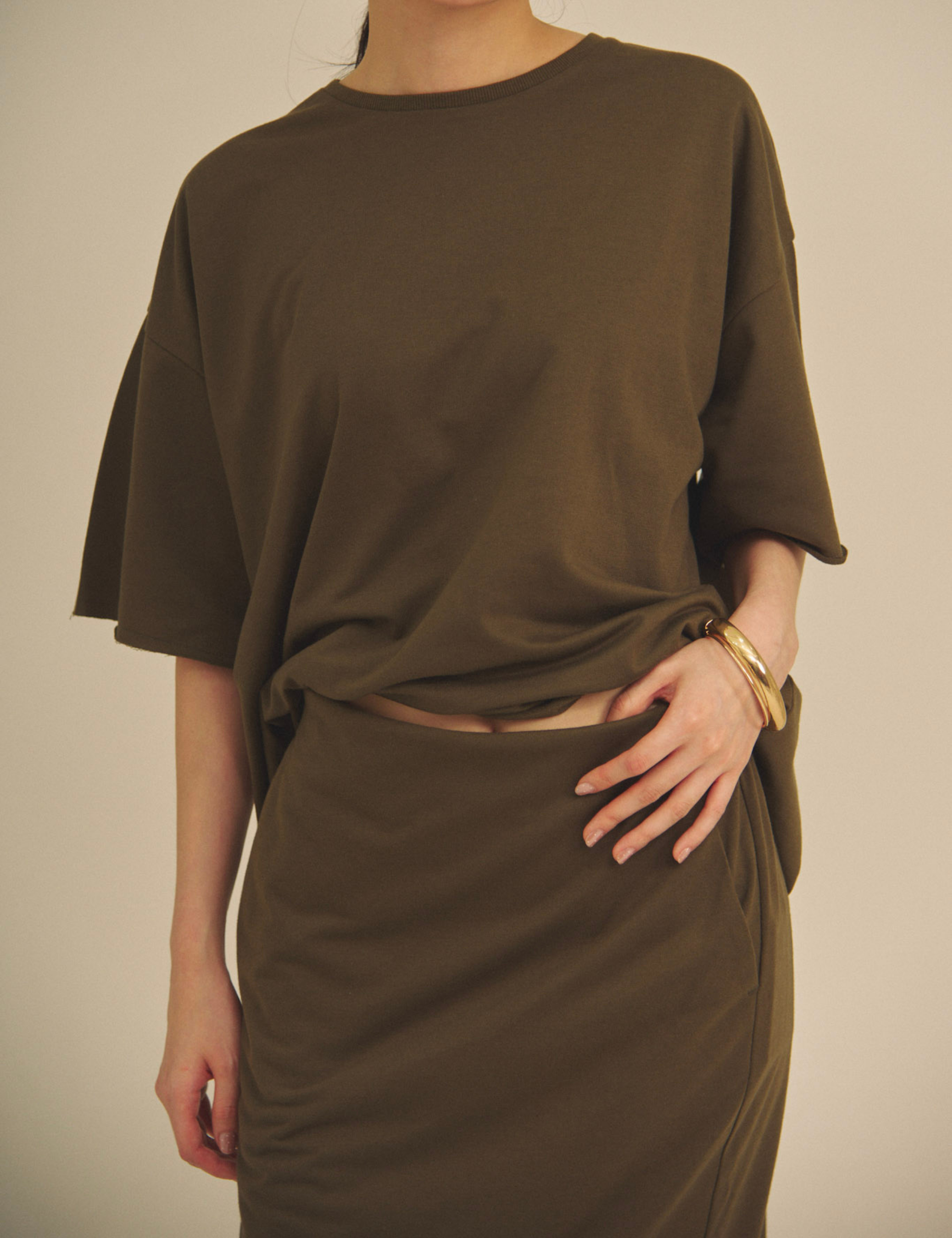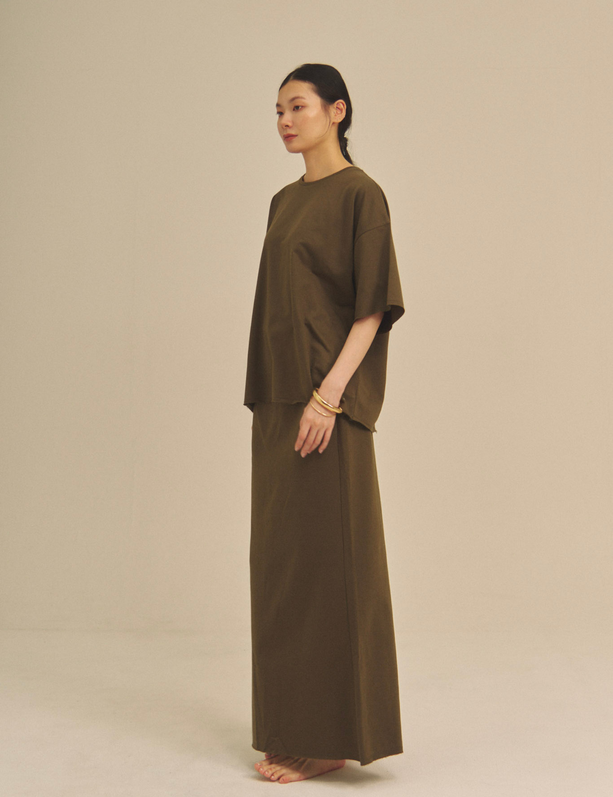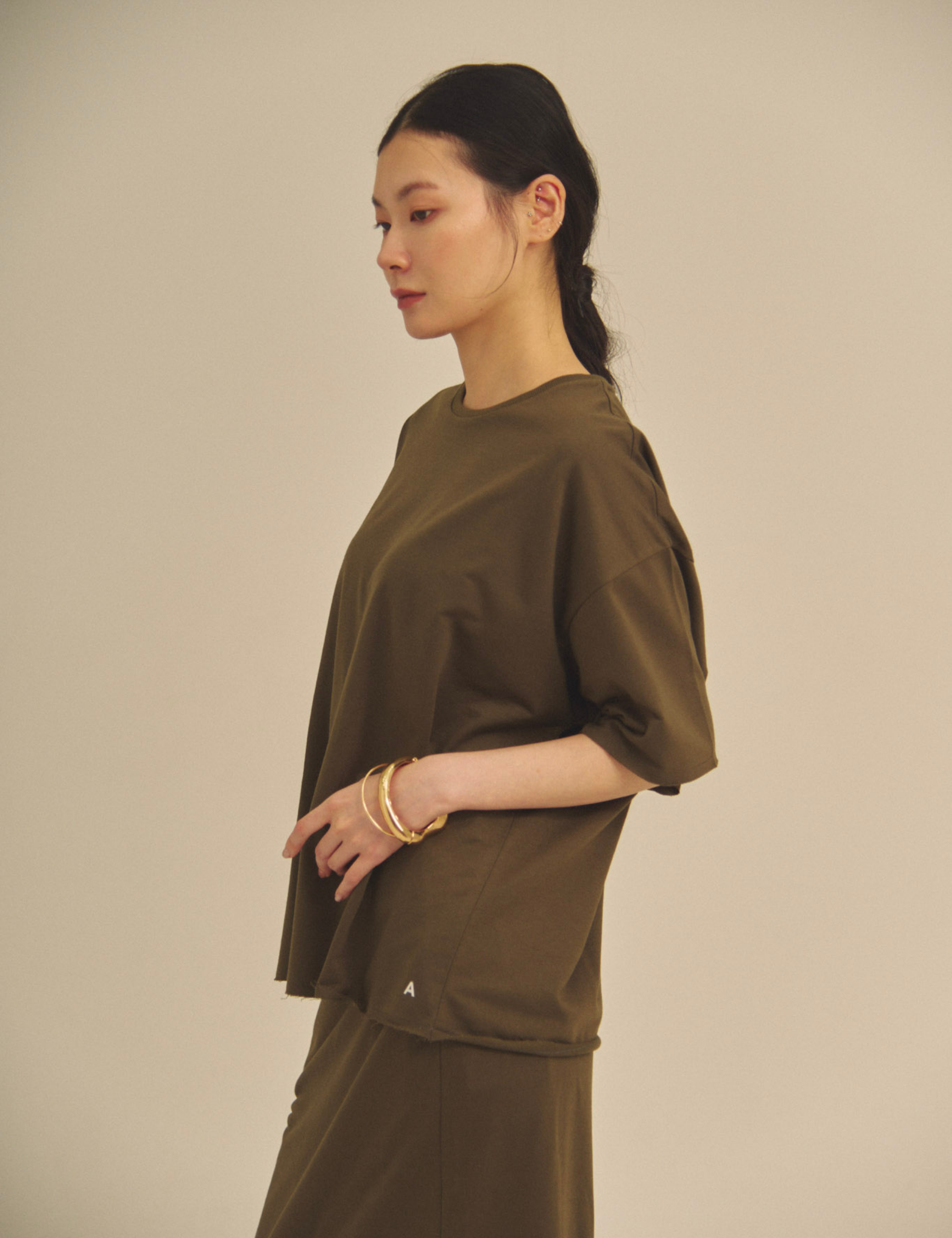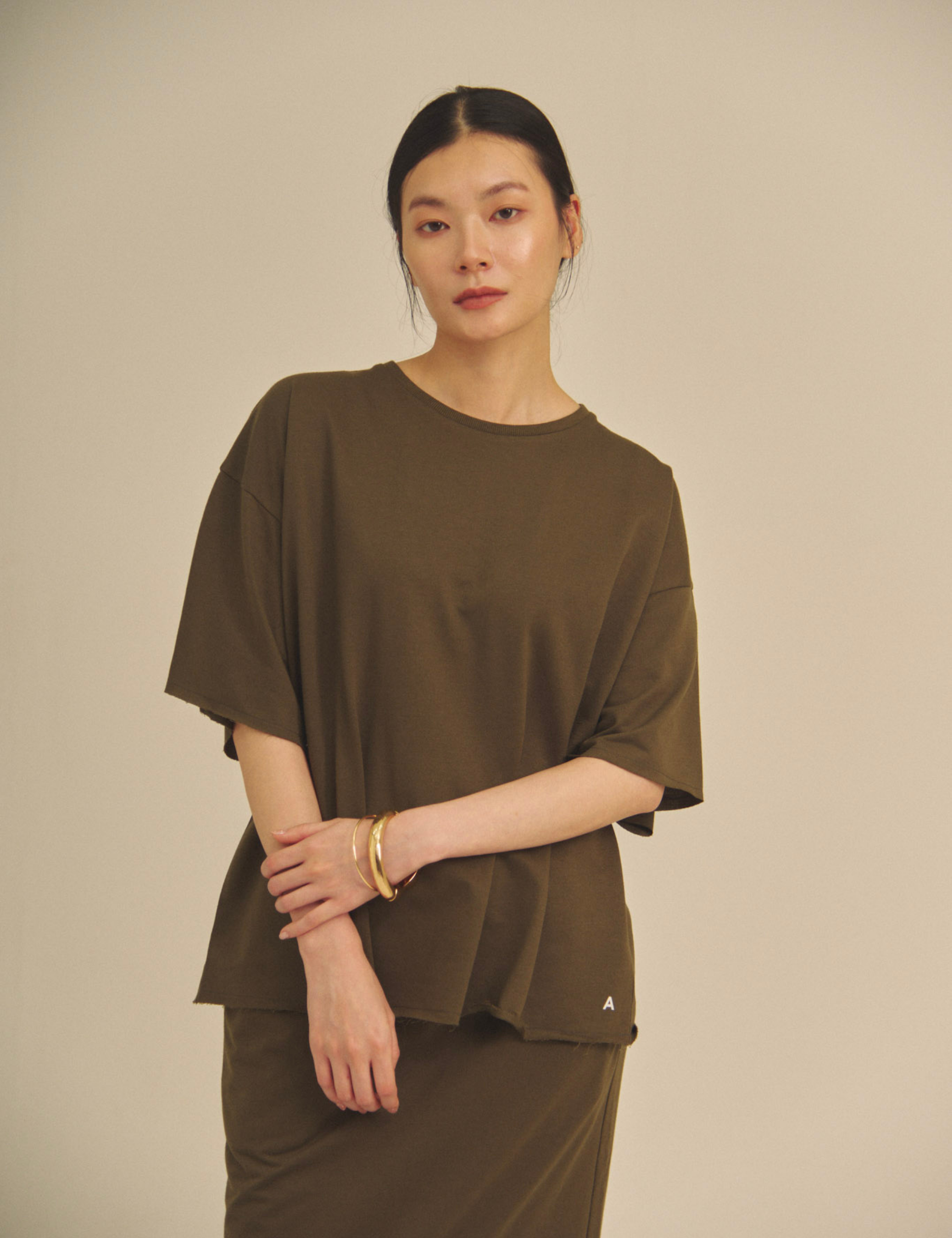 Relaxed Graceful Silhouette Tee / 松葉(khaki)