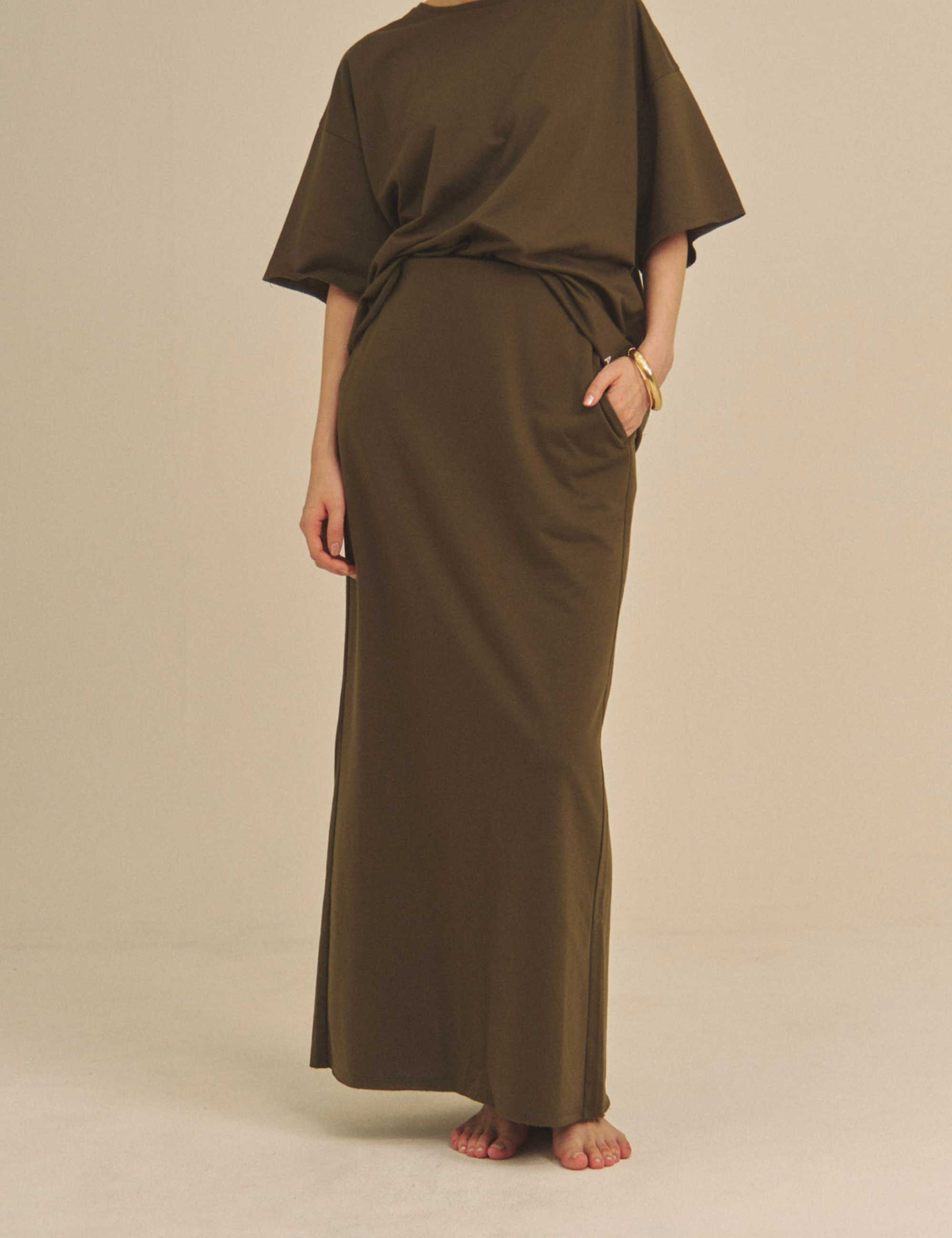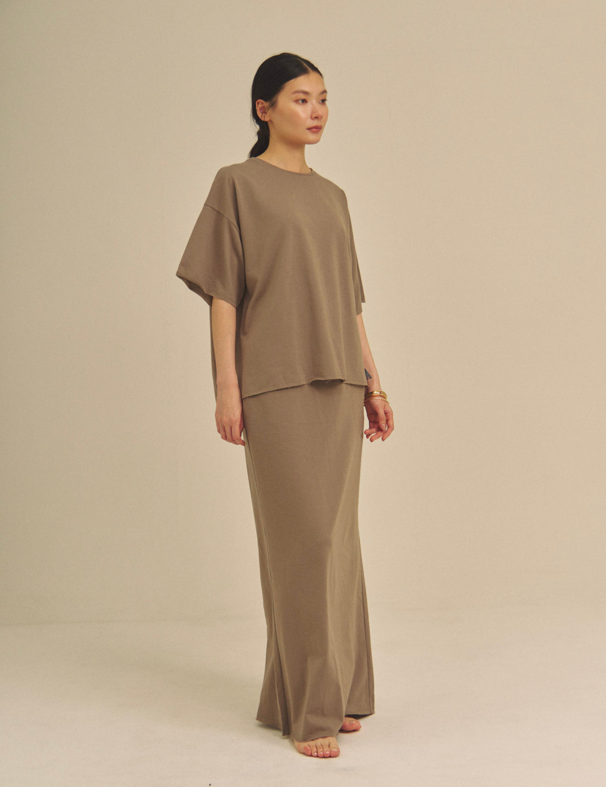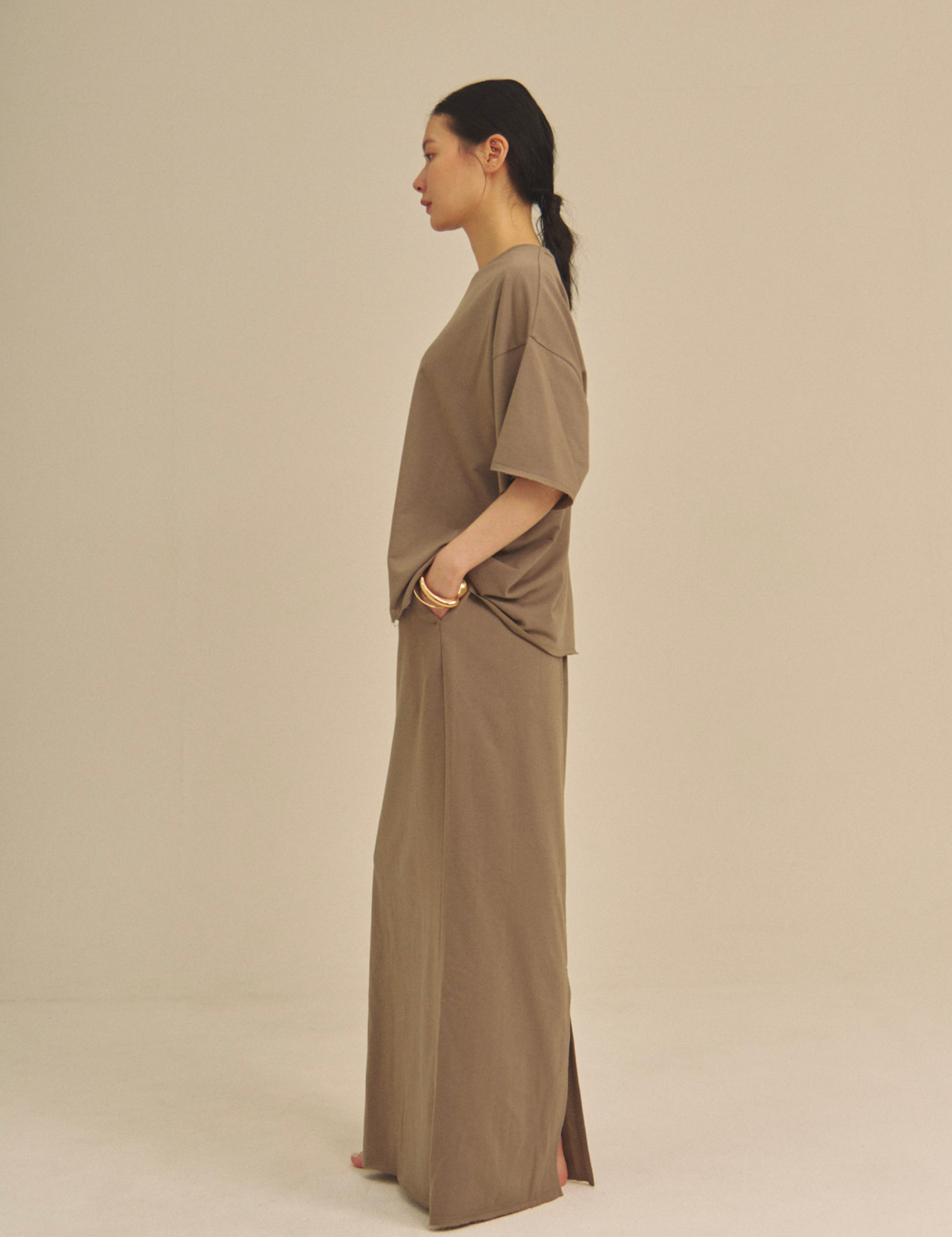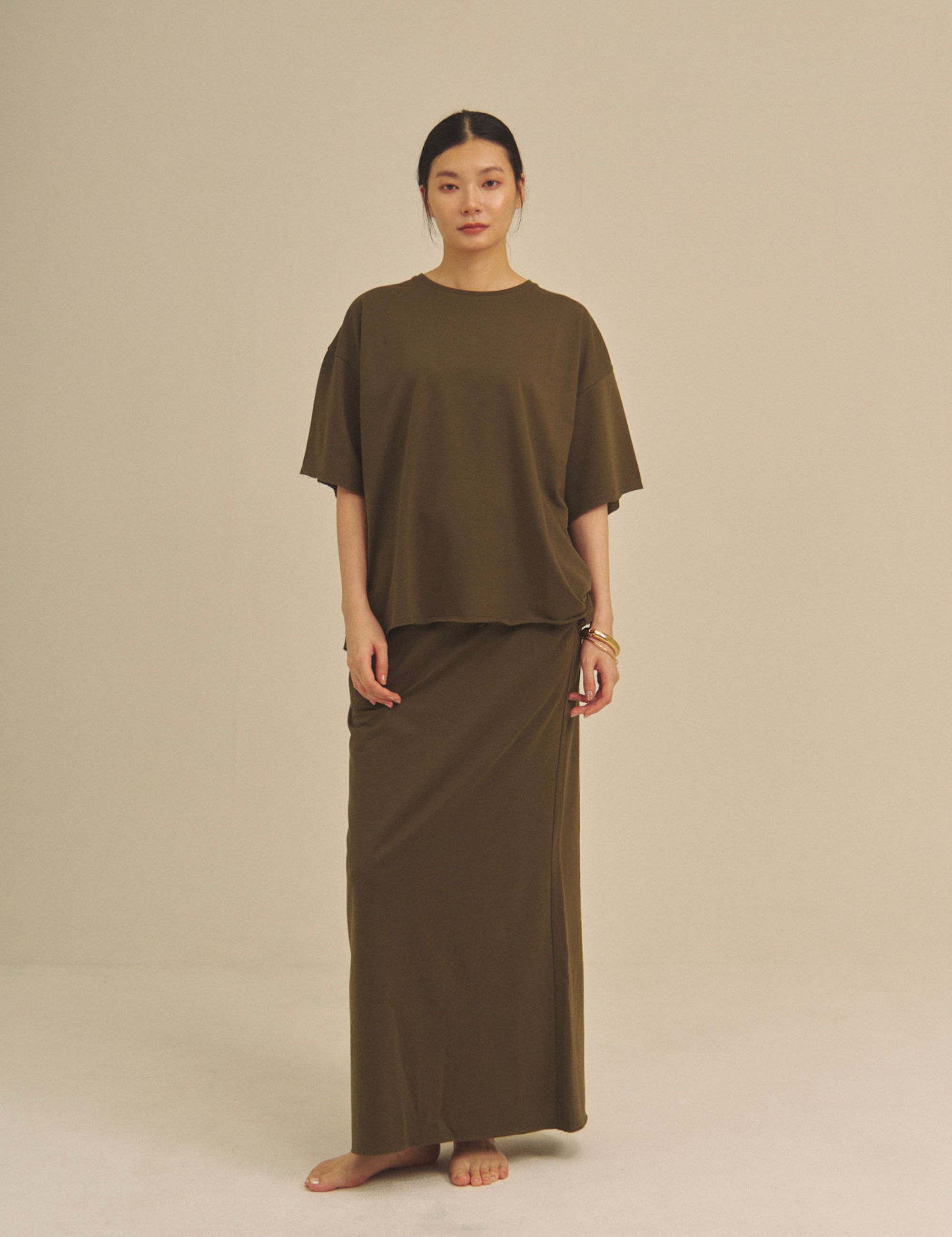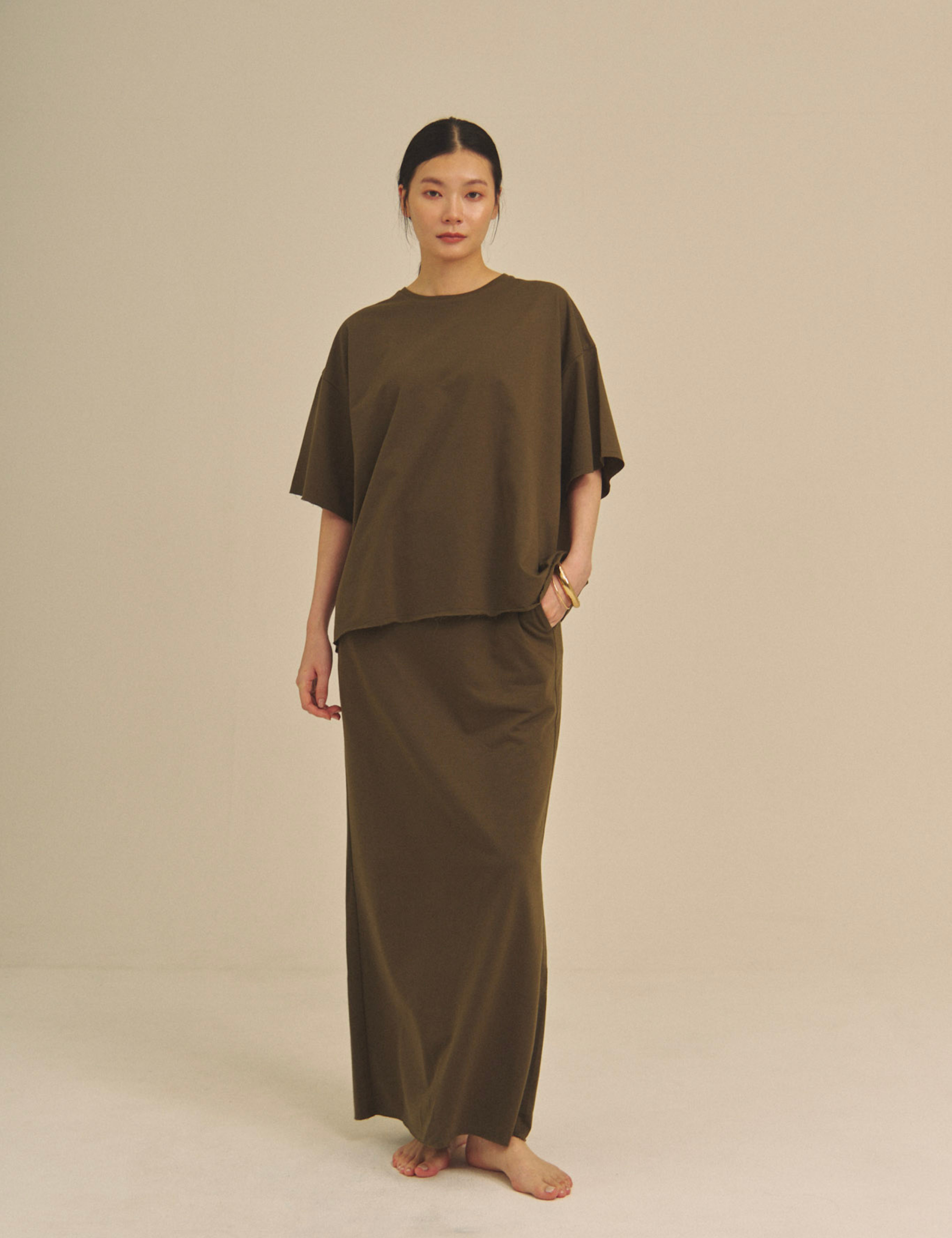 Relaxed Graceful Silhouette Tee / 松葉(khaki)