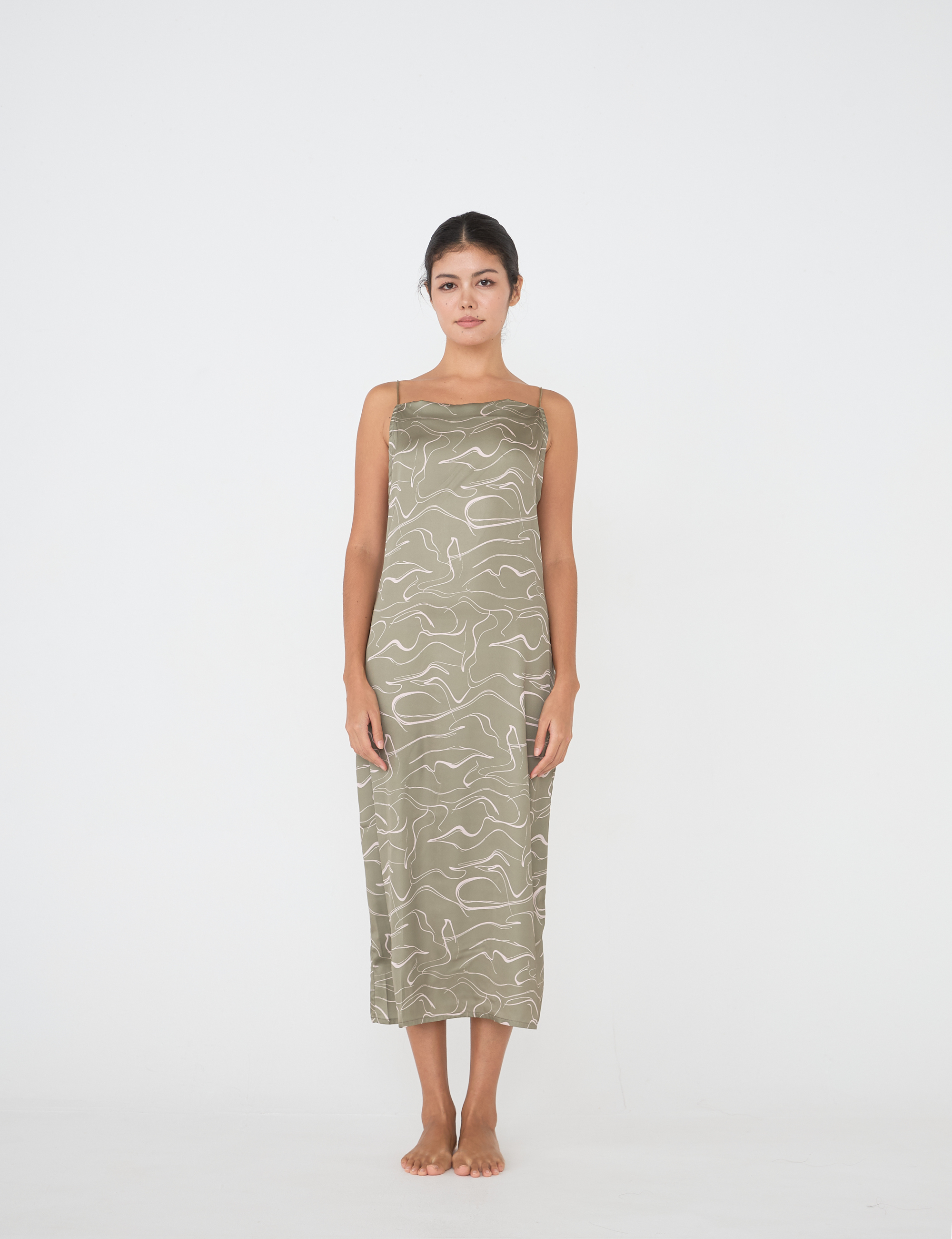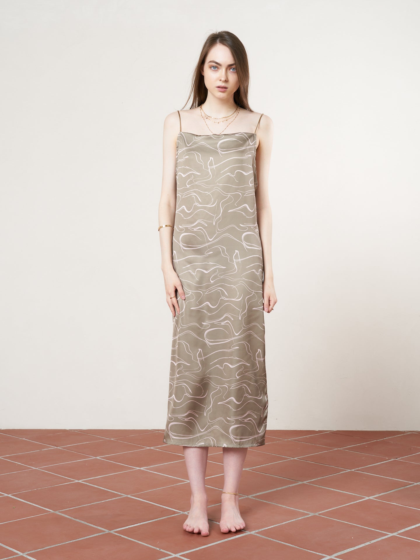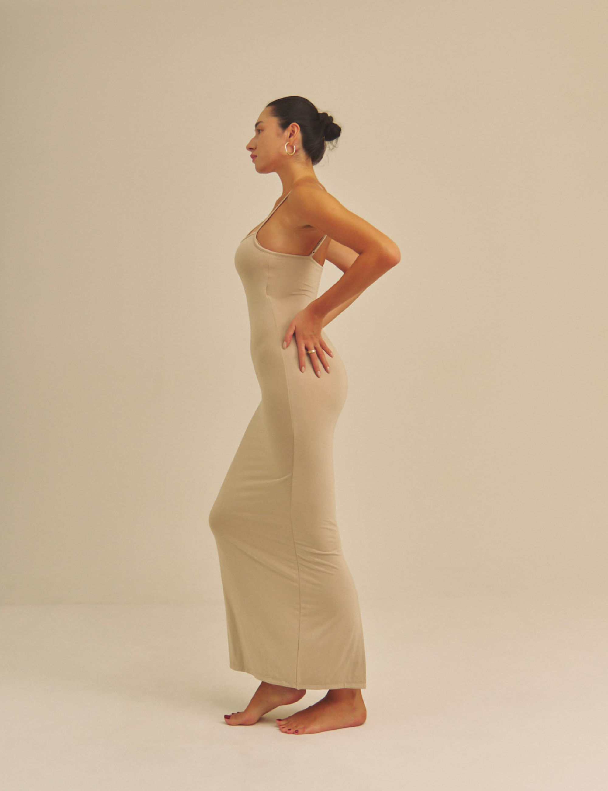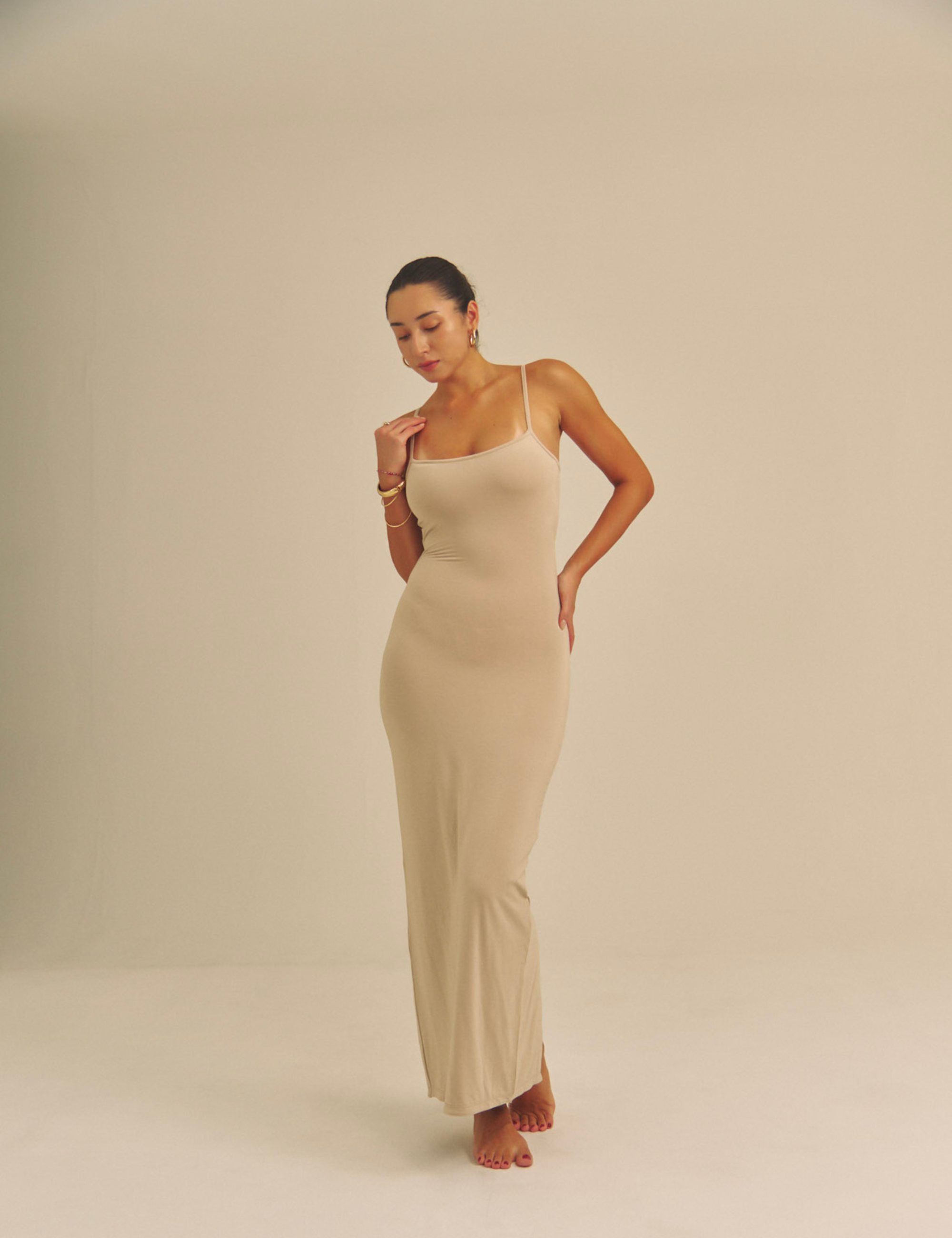 Aura Fit Padded Maxi Camisole Dress / Flaxen (greige)