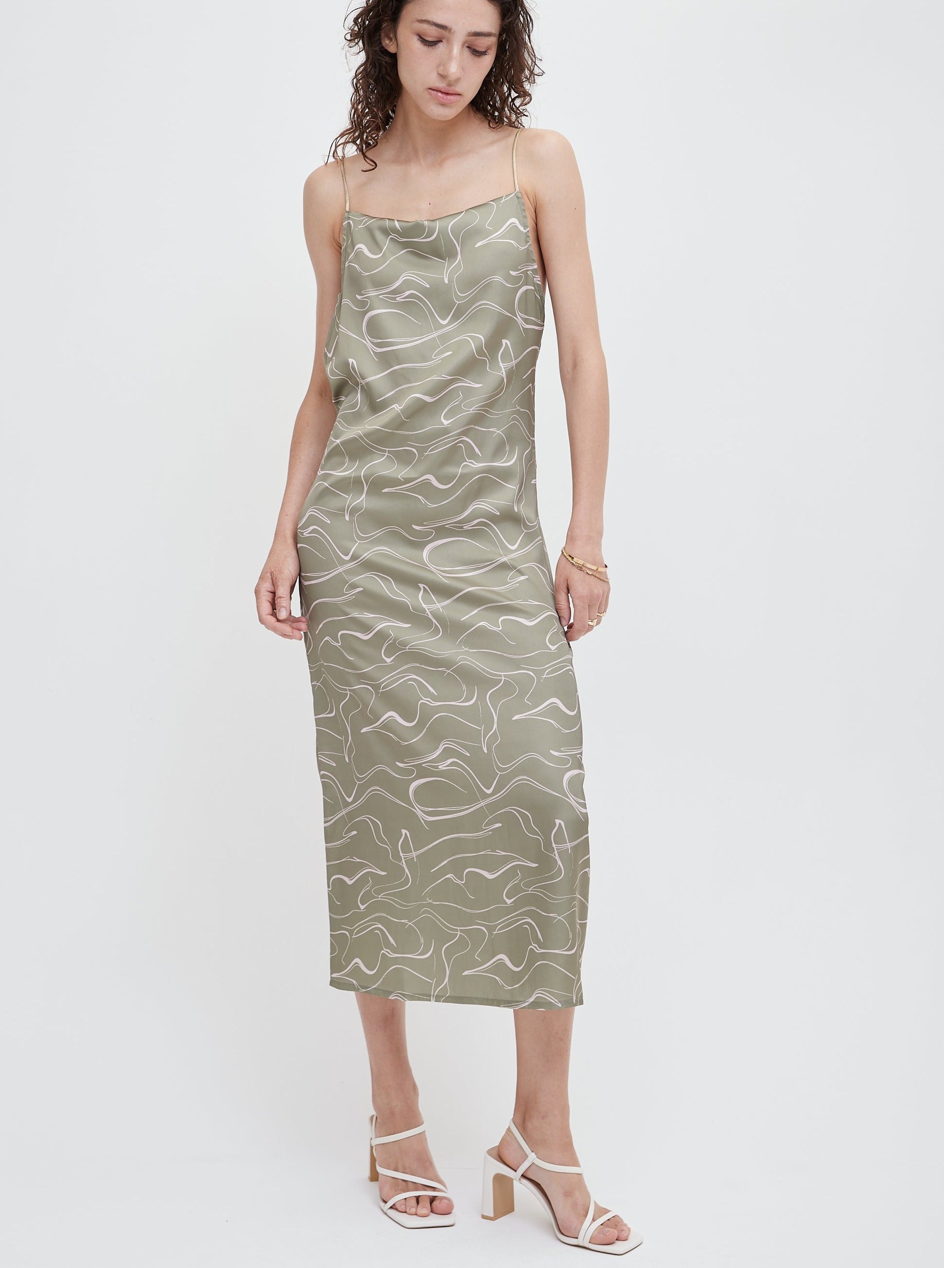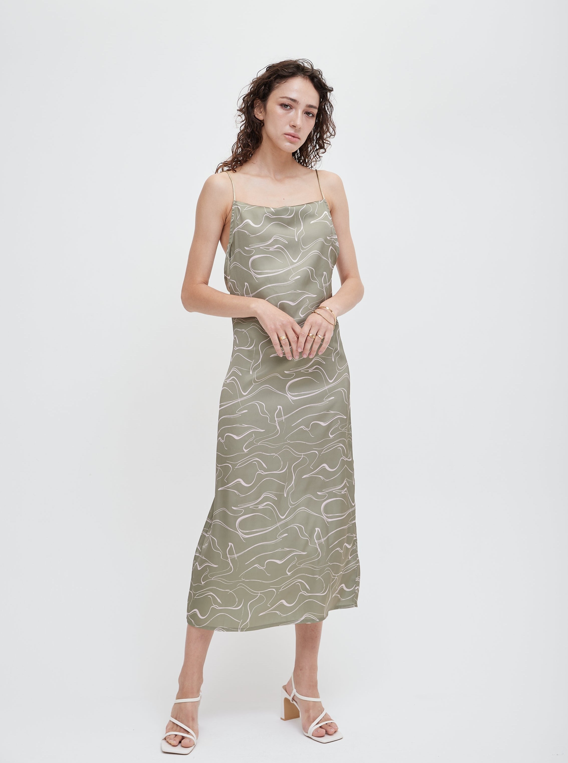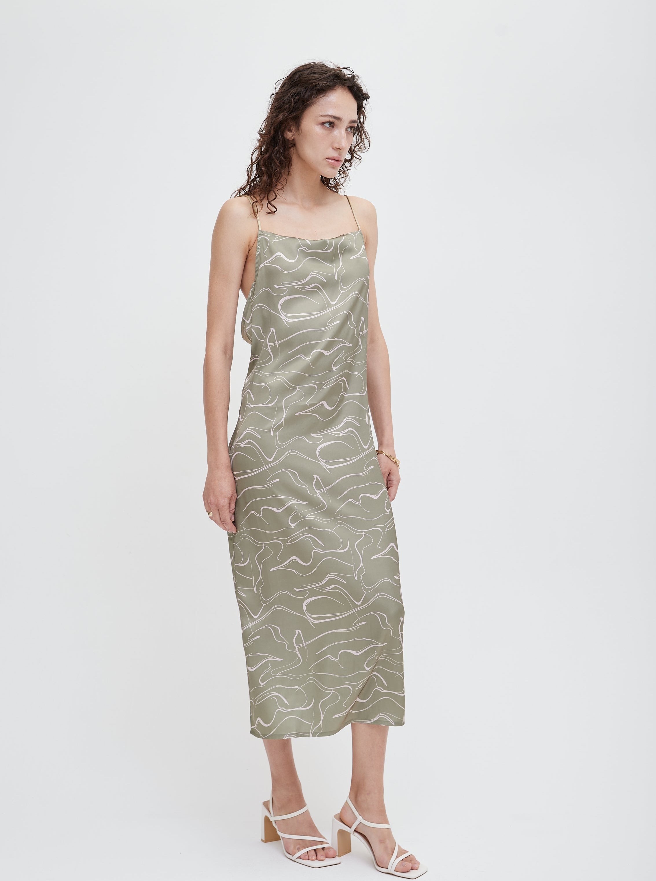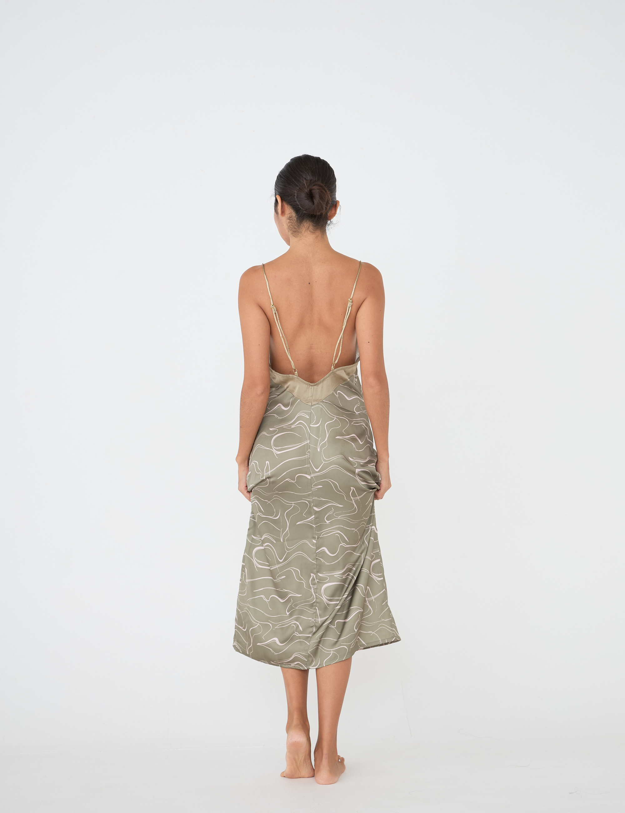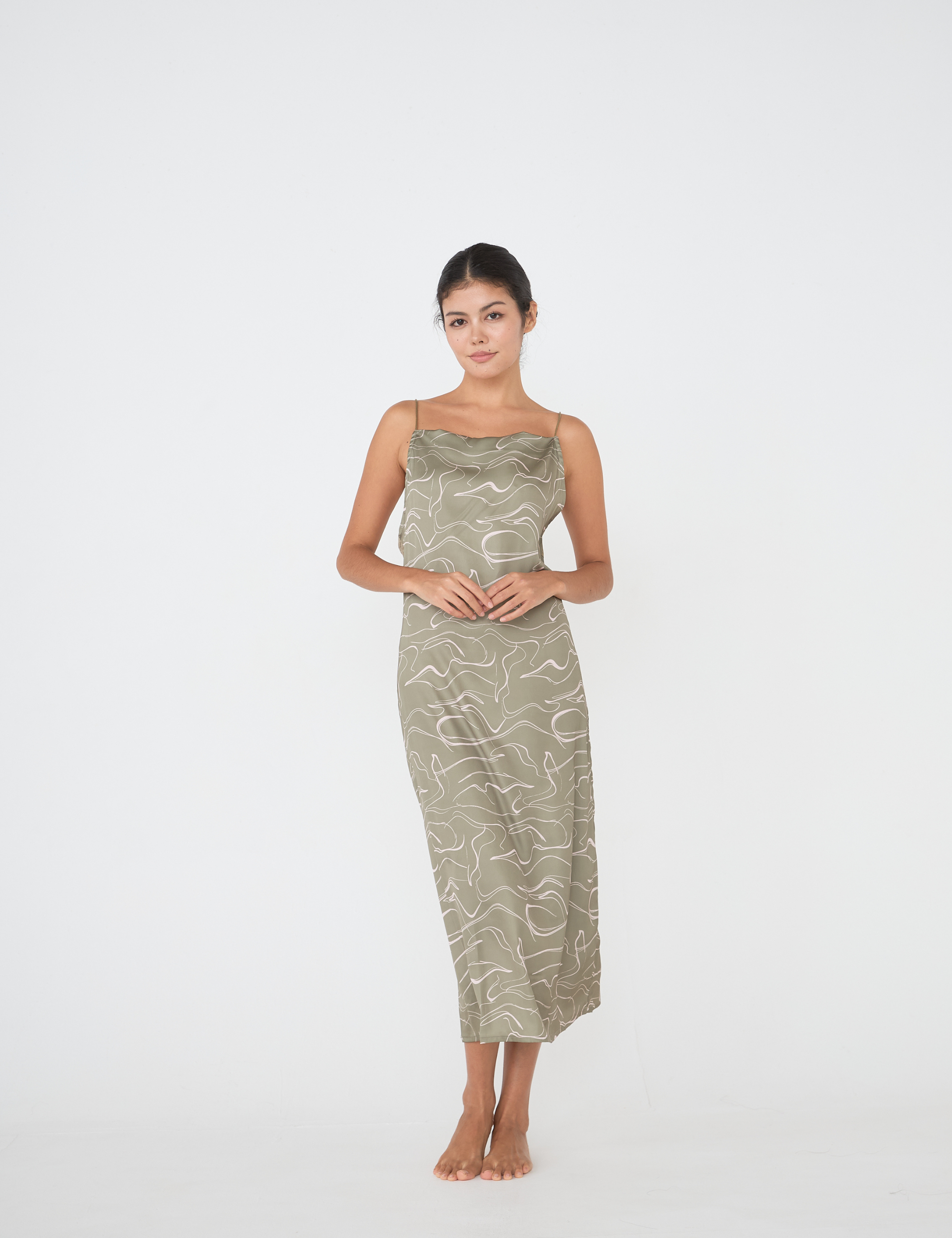 Aura Fit Padded Maxi Camisole Dress / Flaxen (greige)