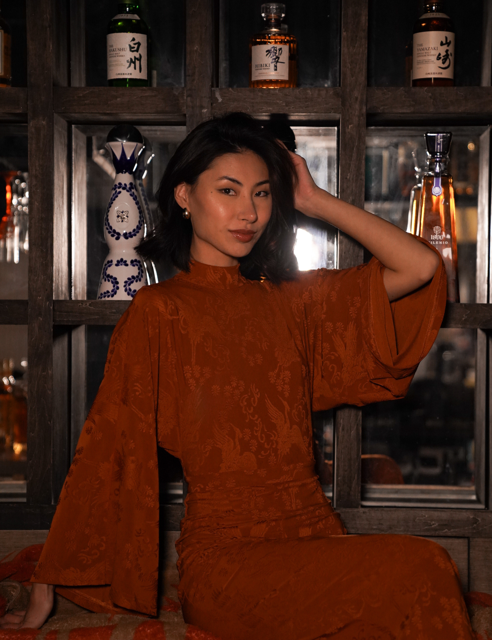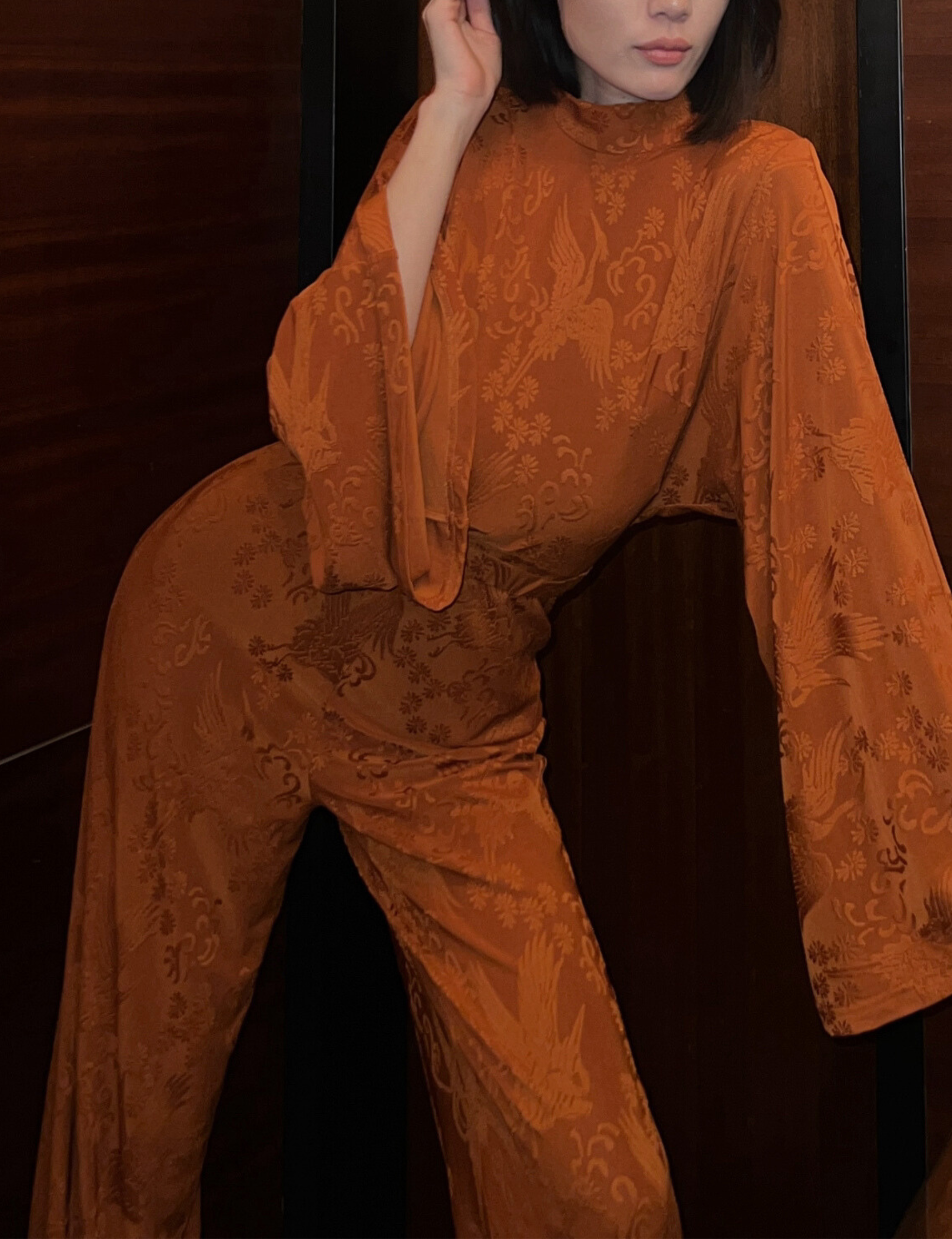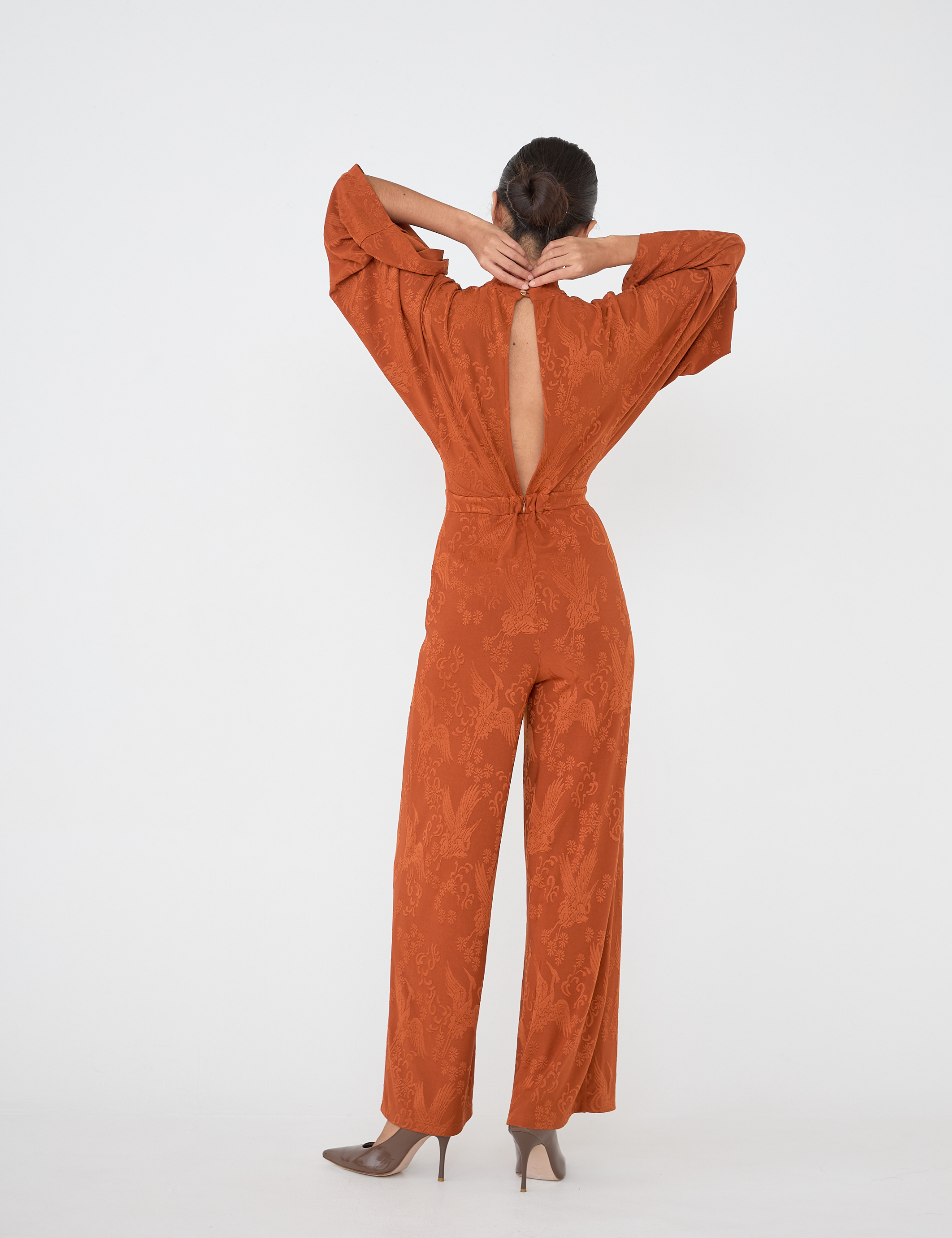 Mandarin Glow Jacquard Jumpsuit / Amber(mandarin)