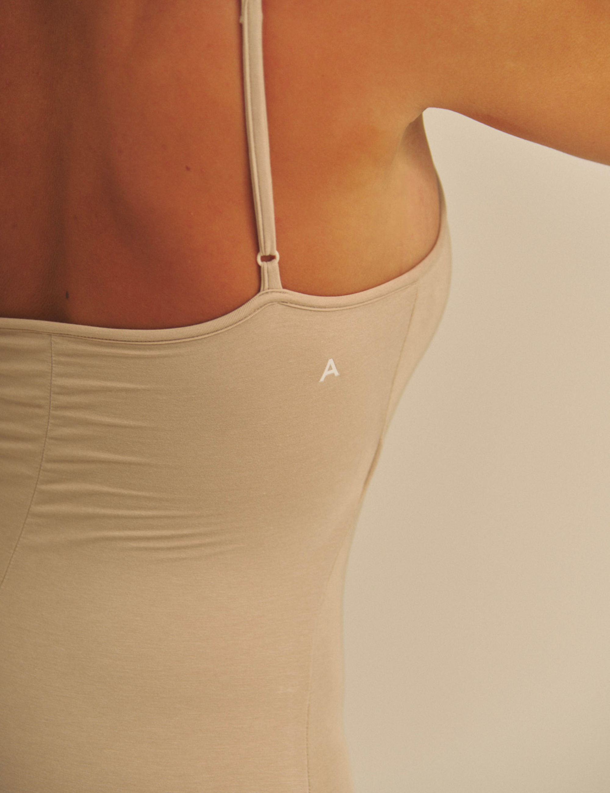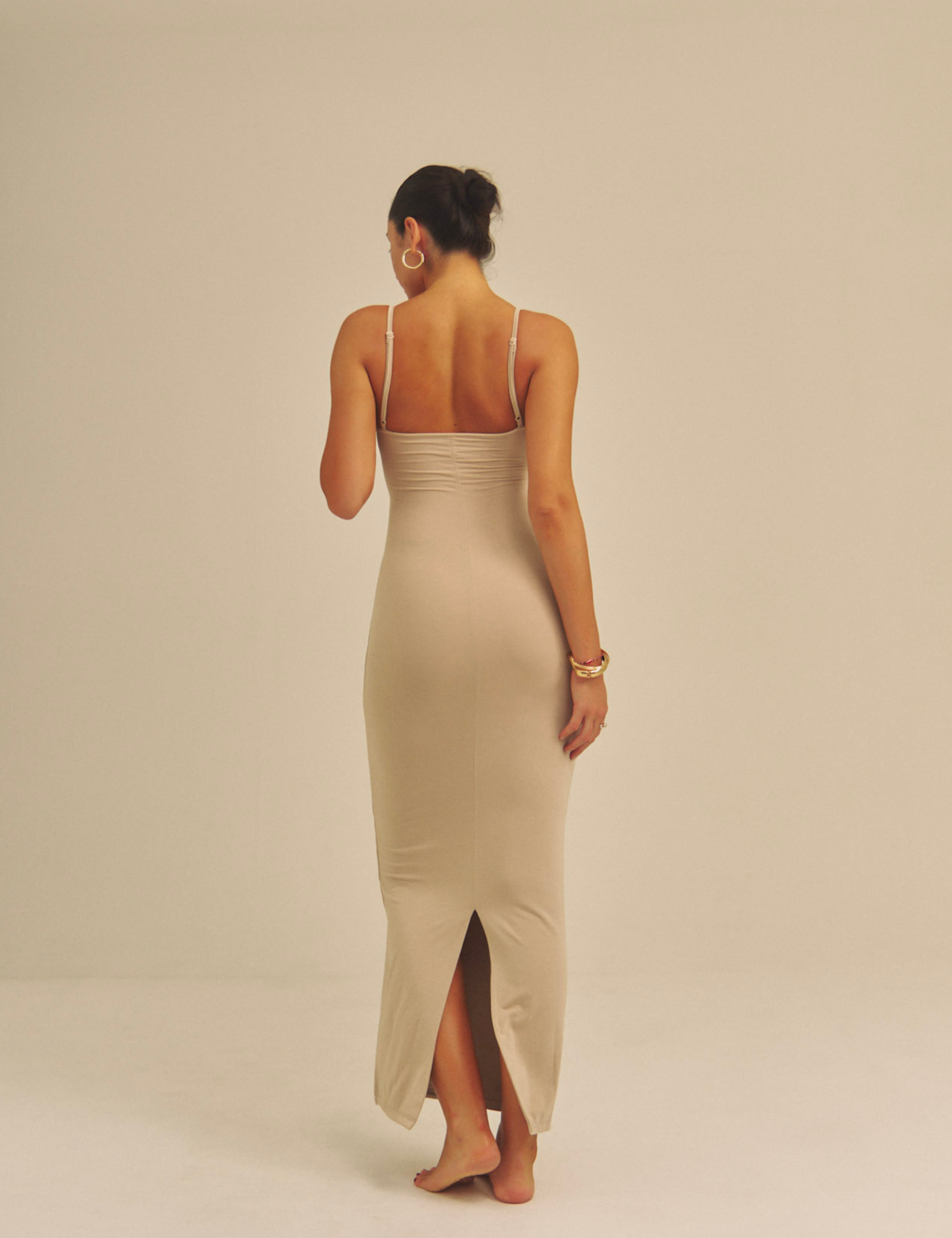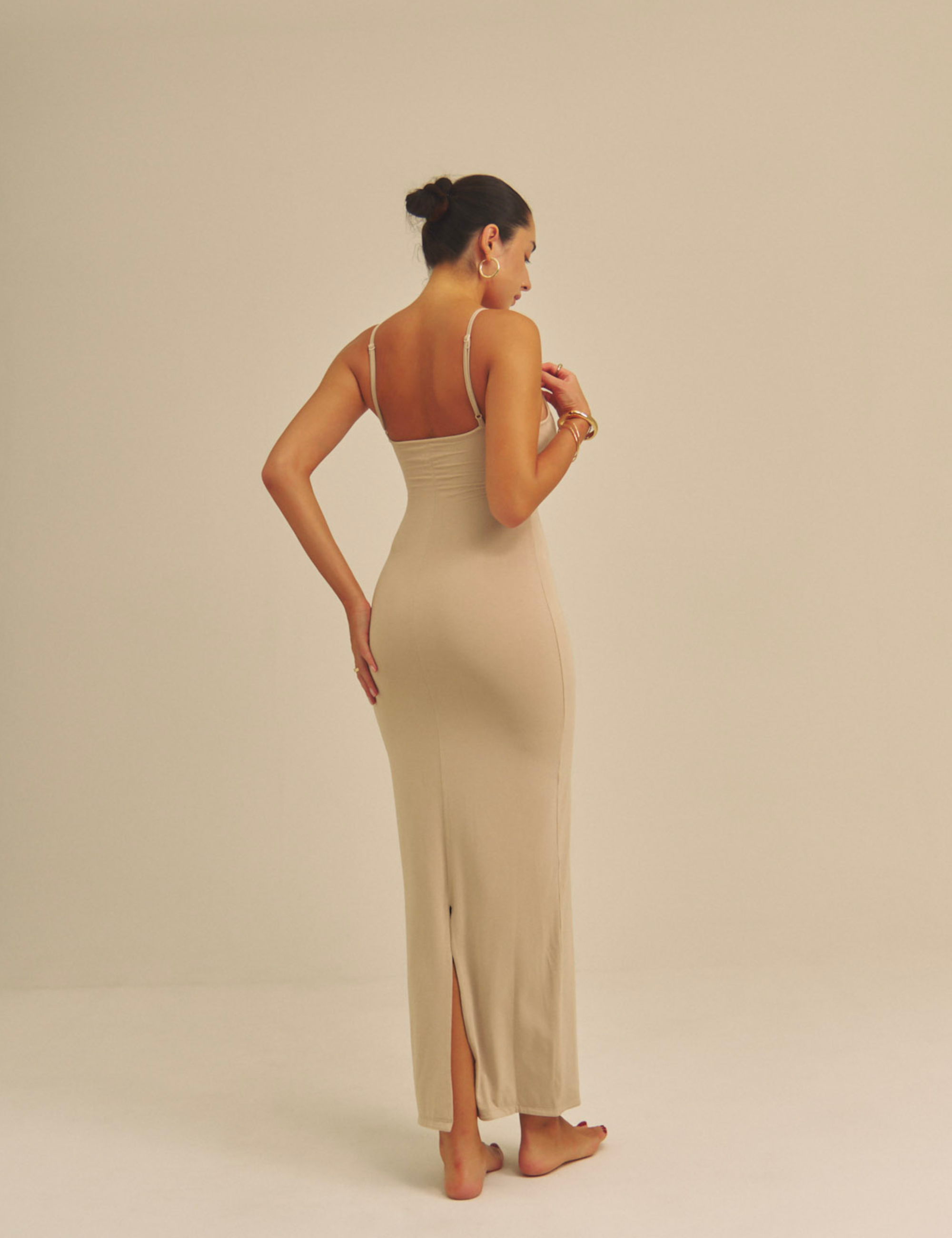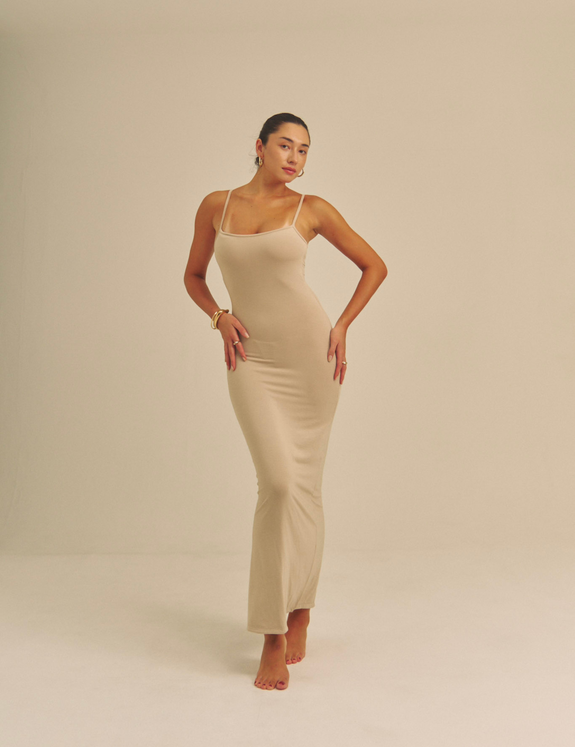 Aura Fit Padded Maxi Camisole Dress / Flaxen (greige)